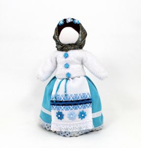 Представляем уникальную авторскую куклу-мотанку ручной работы. Она сделана с любовью и предельной внимательностью, будучи на 100% эксклюзивной со своим неповторимым характером! Куклы-мотанки изготавливают из натуральных материалов: домотканой ткани, хлопка и льна. Кукла-мотанка – это традиционный украинский сувенир! Она не имеет лица. Это не случайно. Издавна так повелось, что мотанка обязательно должна быть безлика, на ней не нужно рисовать чье-то лицо, пытаться передать образ знакомого человека. В давние времена существовало поверье, что если человек рисовал губы и лицо кукле, которую мотал, то его душа переселяется в эту куклу. Поэтому вместо лица мотают ленту либо сакральный крест.