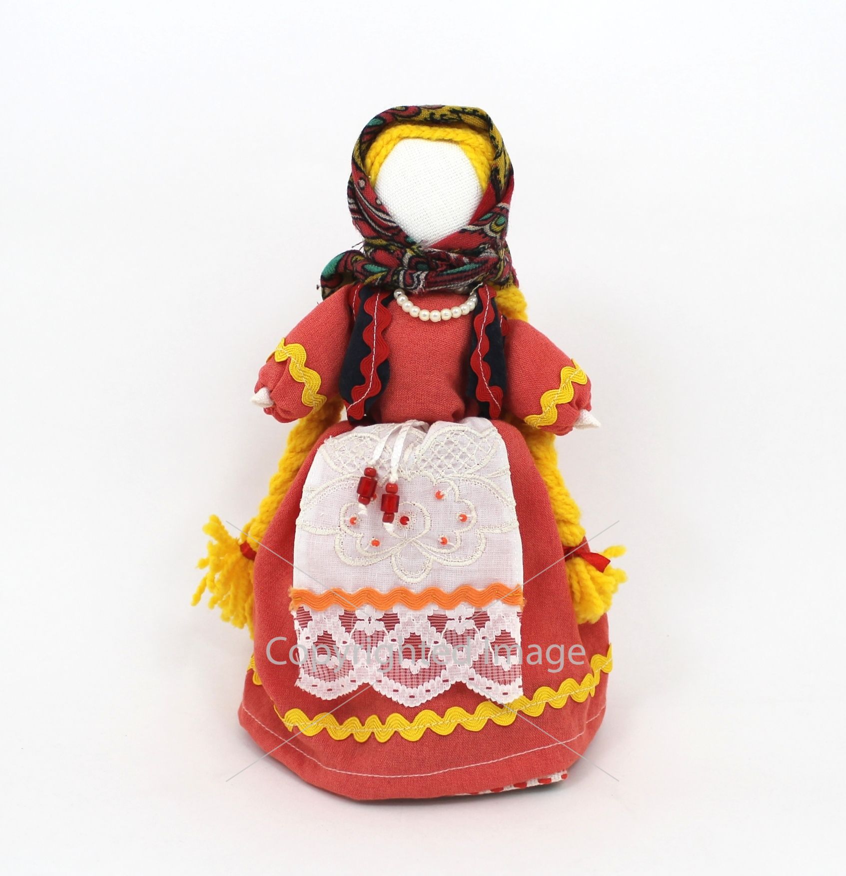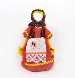 Представляем уникальную авторскую куклу-мотанку ручной работы. Она сделана с любовью и предельной внимательностью, будучи на 100% эксклюзивной со своим неповторимым характером! Куклы-мотанки изготавливают из натуральных материалов: домотканой ткани, хлопка и льна. Кукла-мотанка – это традиционный украинский сувенир! Она не имеет лица. Это не случайно. Издавна так повелось, что мотанка обязательно должна быть безлика, на ней не нужно рисовать чье-то лицо, пытаться передать образ знакомого человека. В давние времена существовало поверье, что если человек рисовал губы и лицо кукле, которую мотал, то его душа переселяется в эту куклу. Поэтому вместо лица мотают ленту либо сакральный крест.