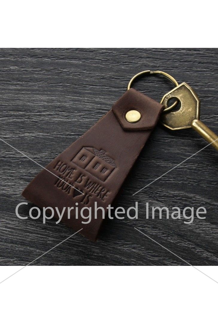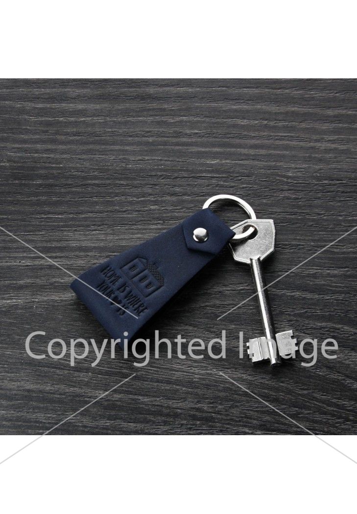 Двусторонний брелок из натуральной кожи со стильным тиснением. Ключи крепятся при помощи прочного металлического кольца. Теперь Вы их никогда не потеряете!
