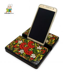 Деревянная подставка для гаджетов с Петриковской росписью (05)