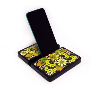 Деревянная подставка для гаджетов с Петриковской росписью "Зеленый виноград"