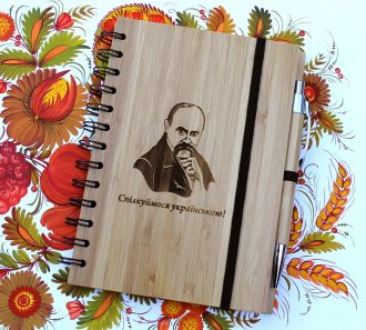Деревянный эко-набор блокнот с ручкой "Шевченко. Спілкуємося українською"