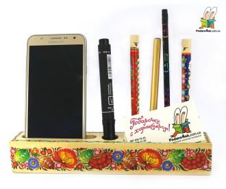 Деревянный настольный органайзер с Петриковской росписью (04)