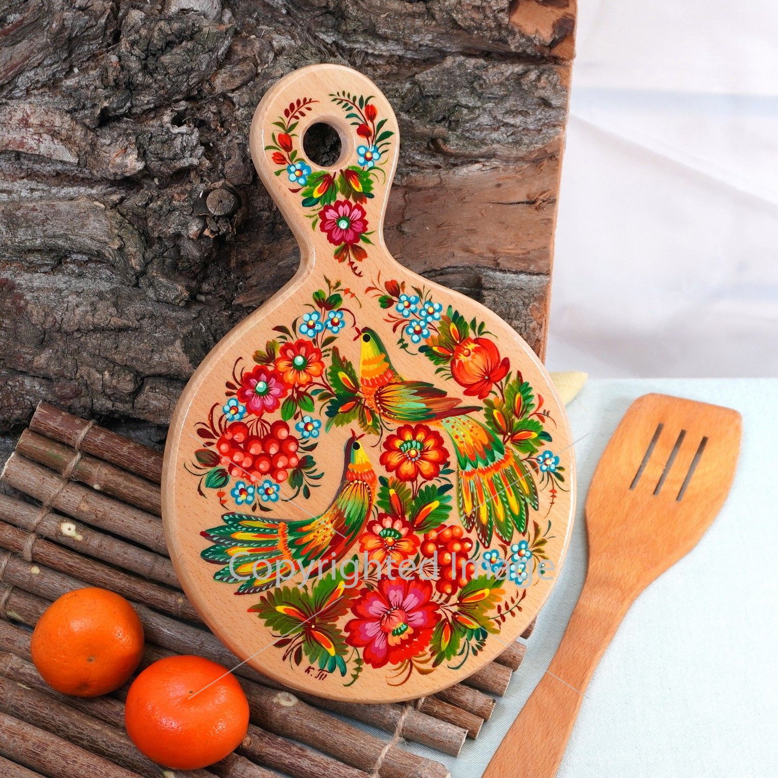 Есть кухонные доски – рабочие лошадки, на которых не жалко нарезать, разделывать, раскатывать. А есть - королевы кухни, которые призваны украшать интерьер, радовать хозяев дома и гостей своей неповторимой красотой. Интернет-магазин Podaro4ek.com.ua представляет именно королев кухни – эксклюзивные деревянные кухонные досточки ручной работы с Петриковской росписью. Фантастические цветы, птицы, пейзажи оживают сочными красками на деревянных изделиях украинских художников.