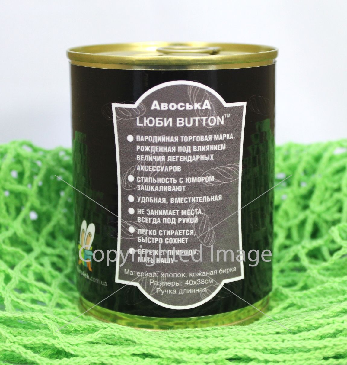 Эко-сумка, авоська LЮБИ BUTTON в банке консервированная (зеленый)