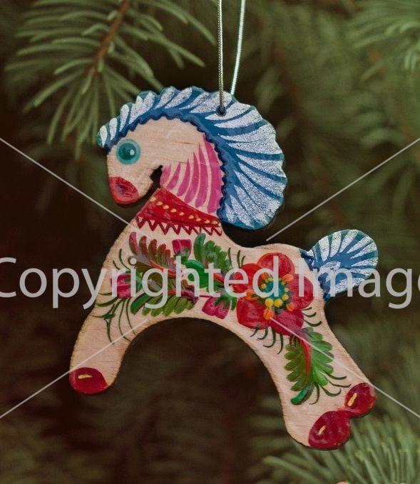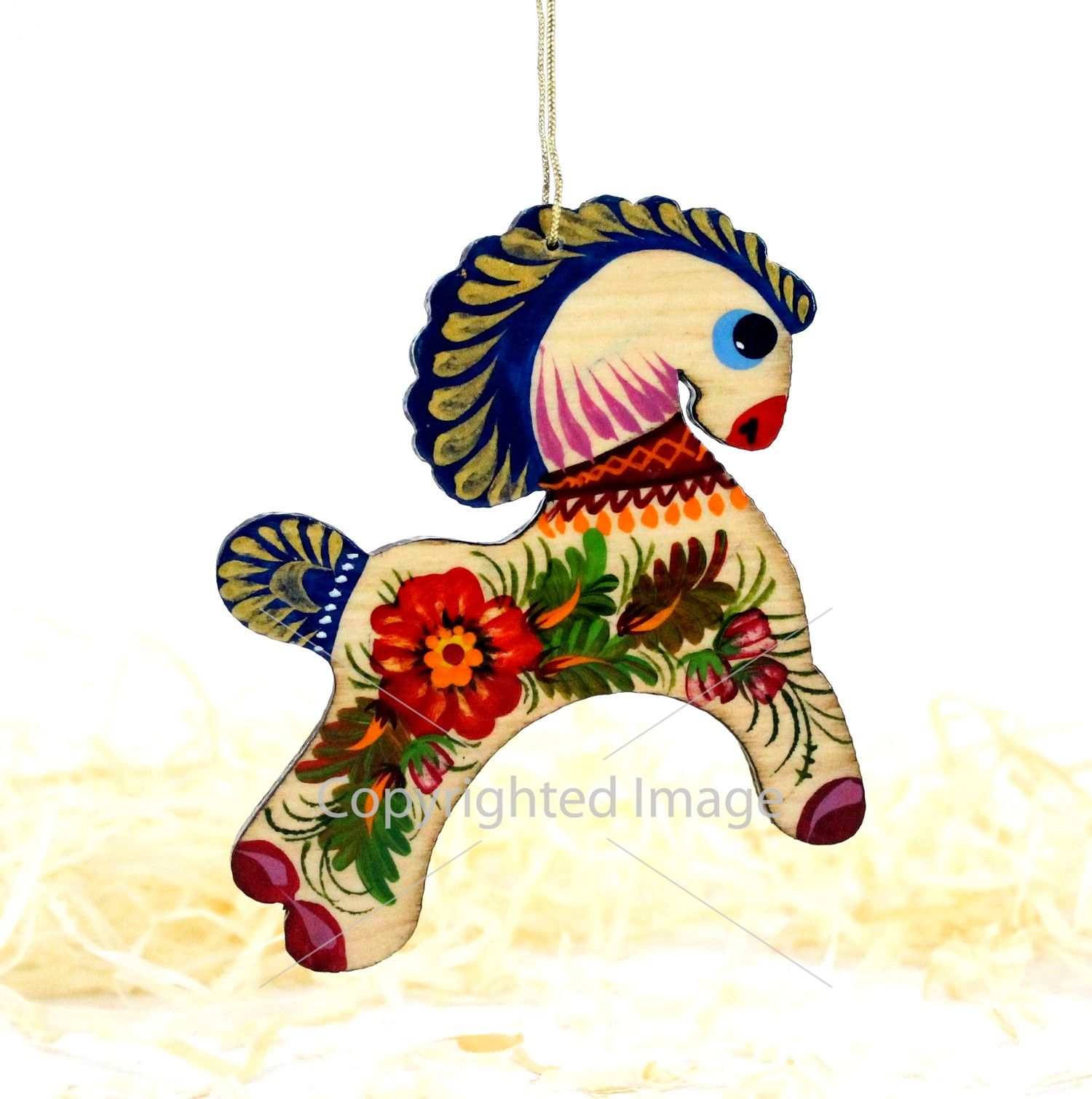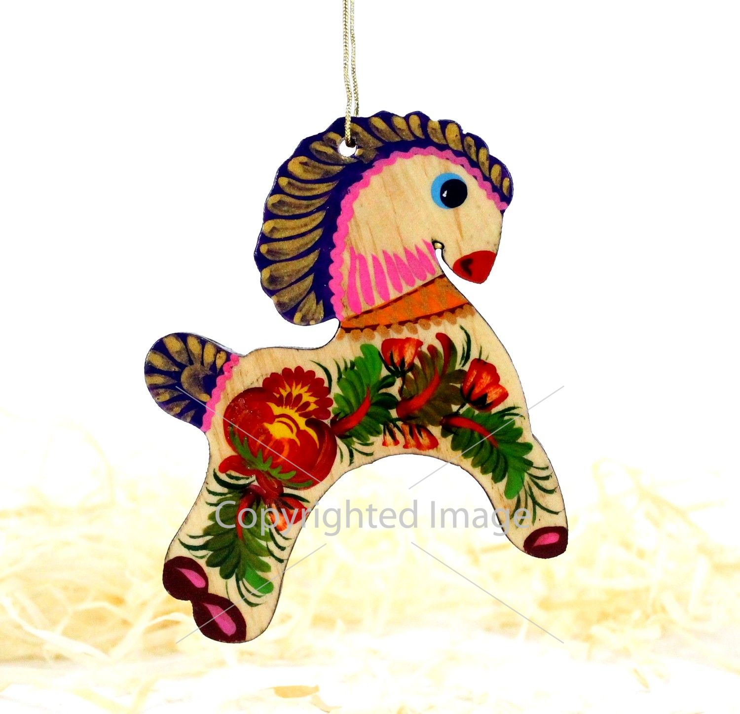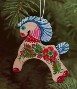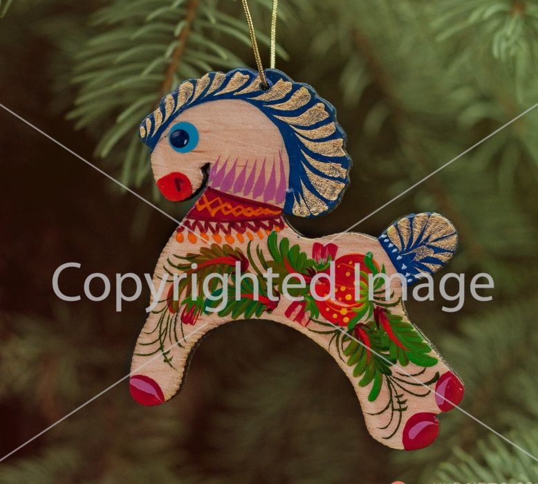 Елочная игрушка с Петриковской росписью "Коник", на светлом дереве