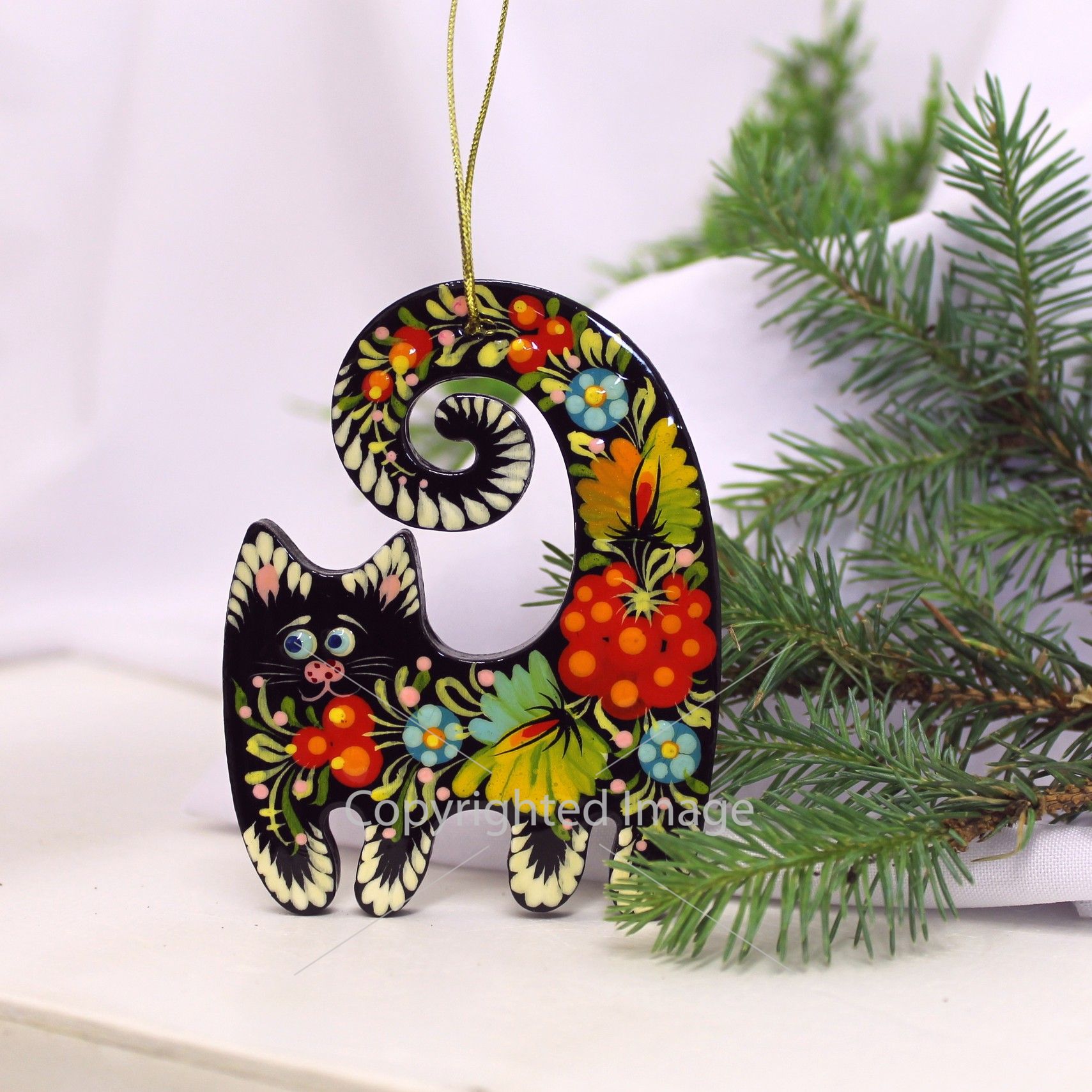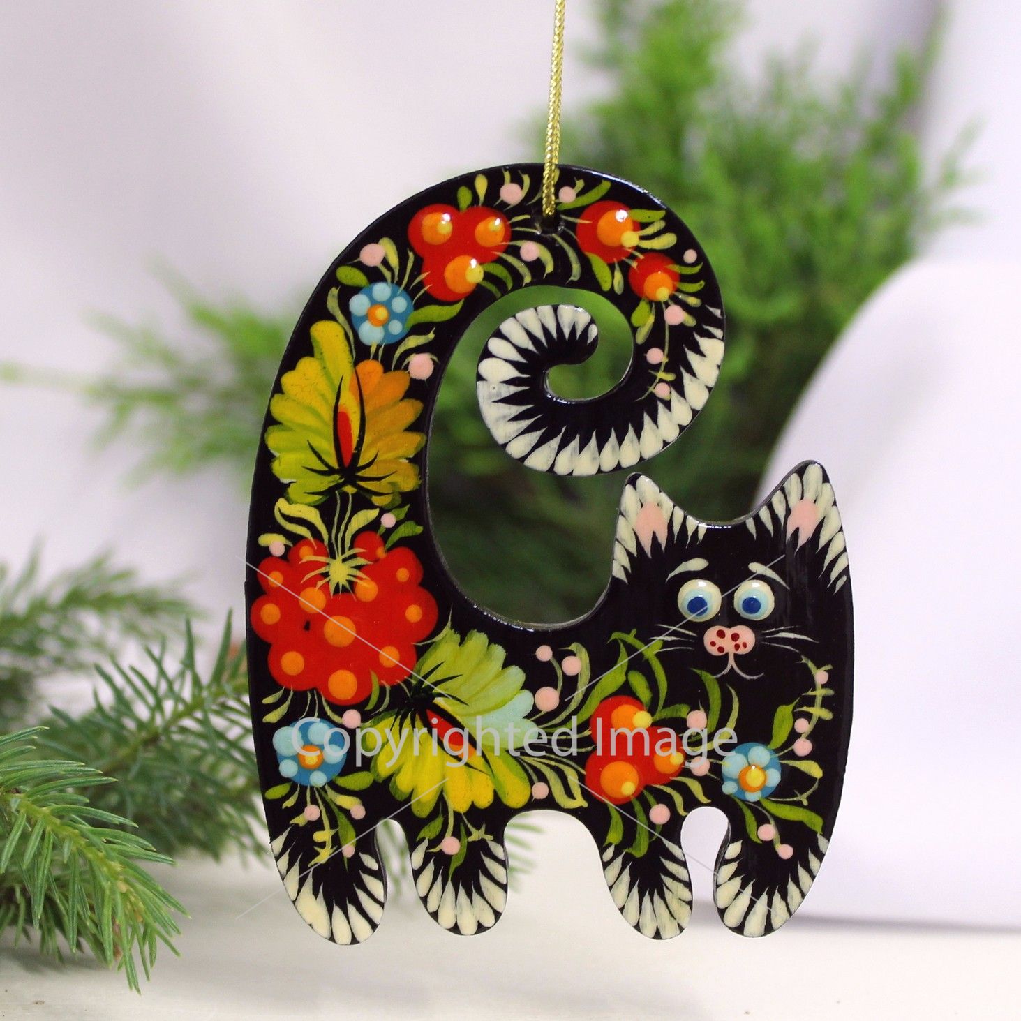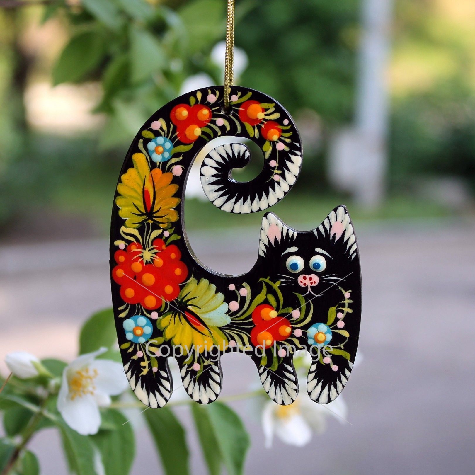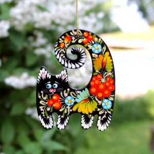 Елочная игрушка с Петриковской росписью "Кот" милашка