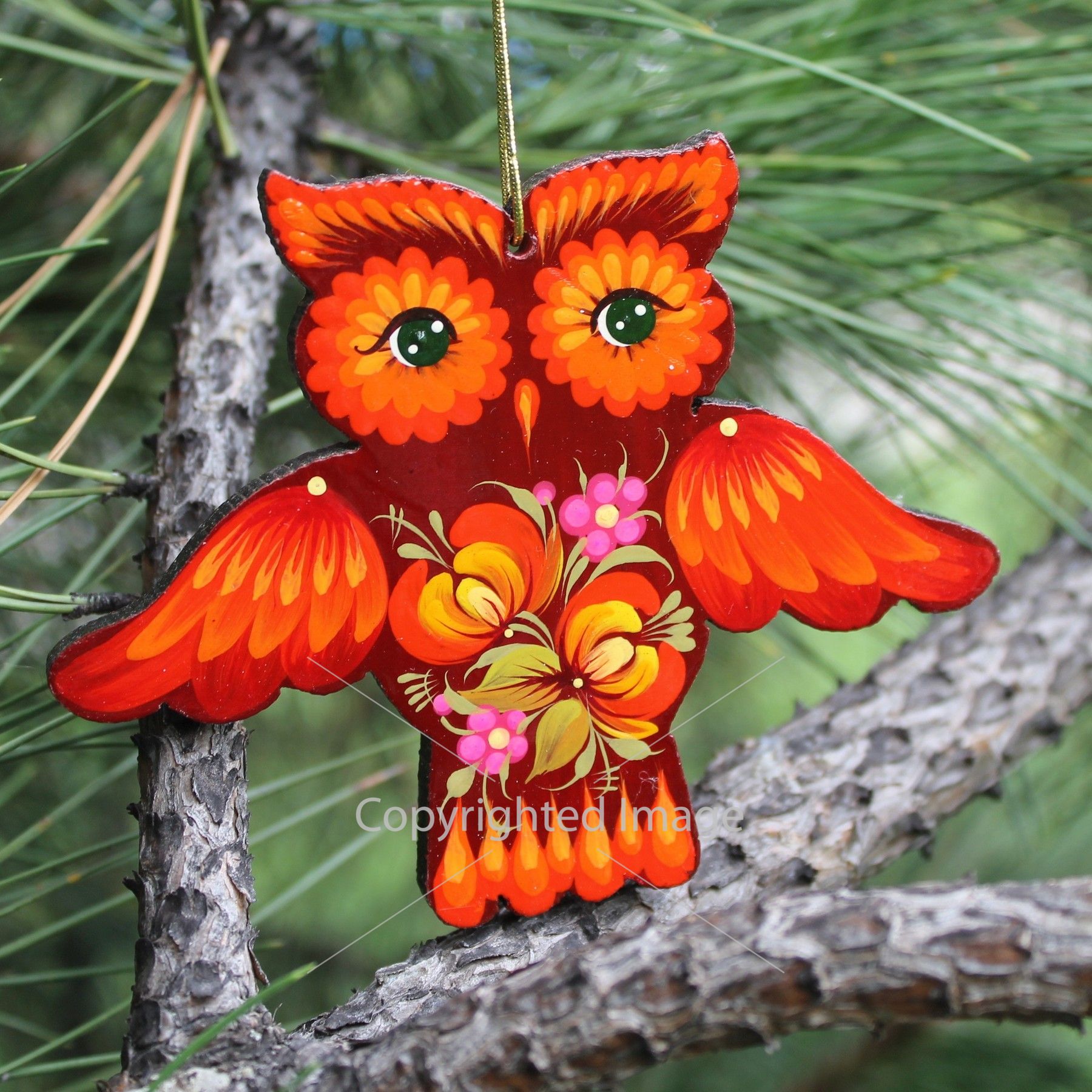 Елочная игрушка с петриковской росписью "Сова" алая