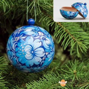 Елочный шар-шкатулка с Петриковской росписью 01