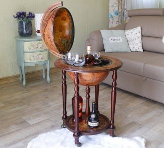 Глобус-бар из натурального дерева в античном стиле станет украшением любого интерьера и отличным подарком настоящим эстетам и любителям насладиться бокалом вина.