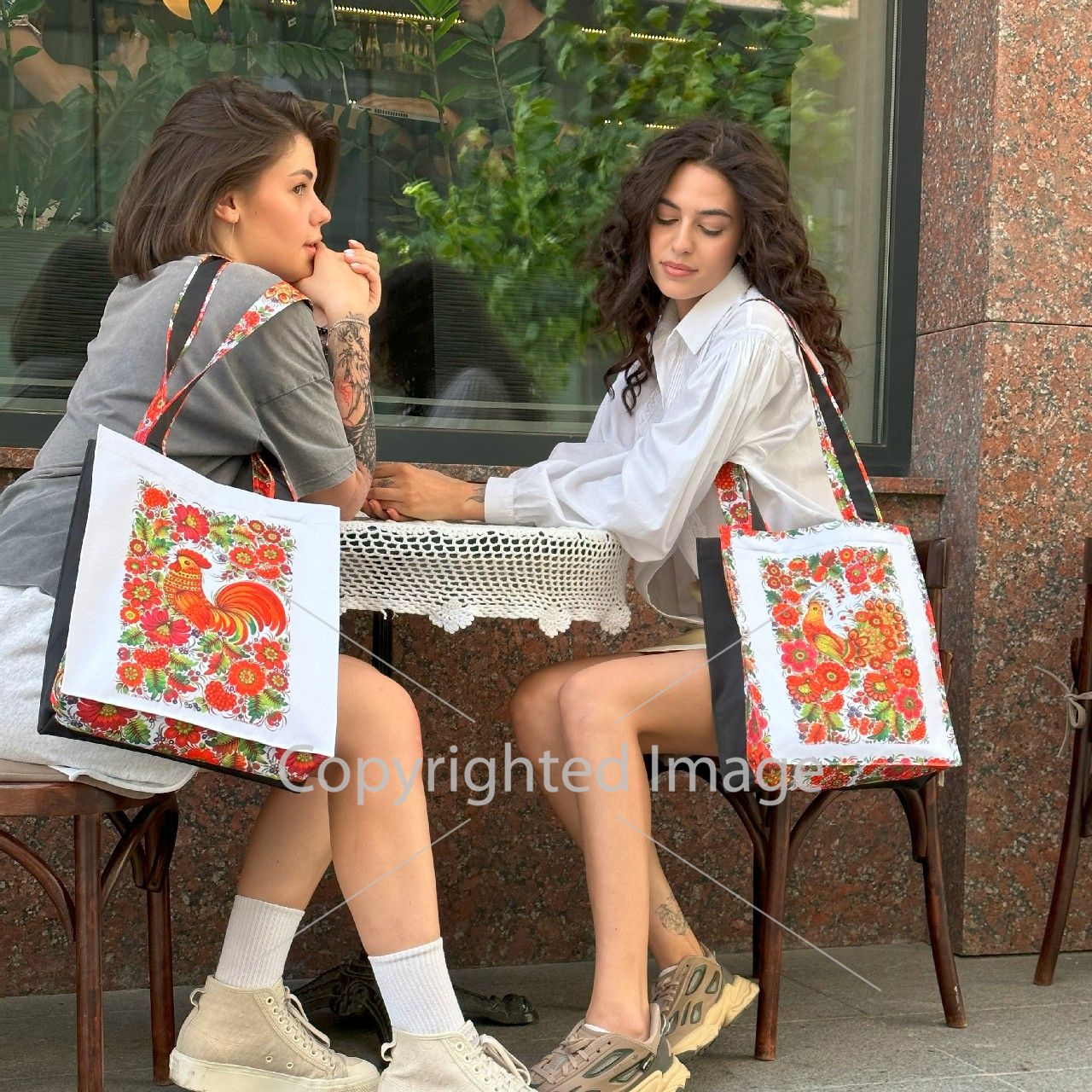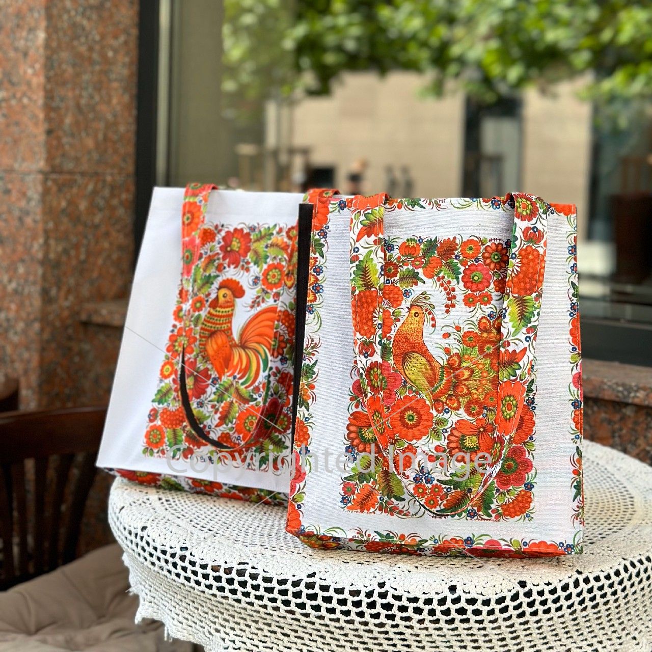 Удивительно красивый и практичный подарок – шопер с принтом из Арт-галереи авторских работ наших мастеров Петриковской росписи.