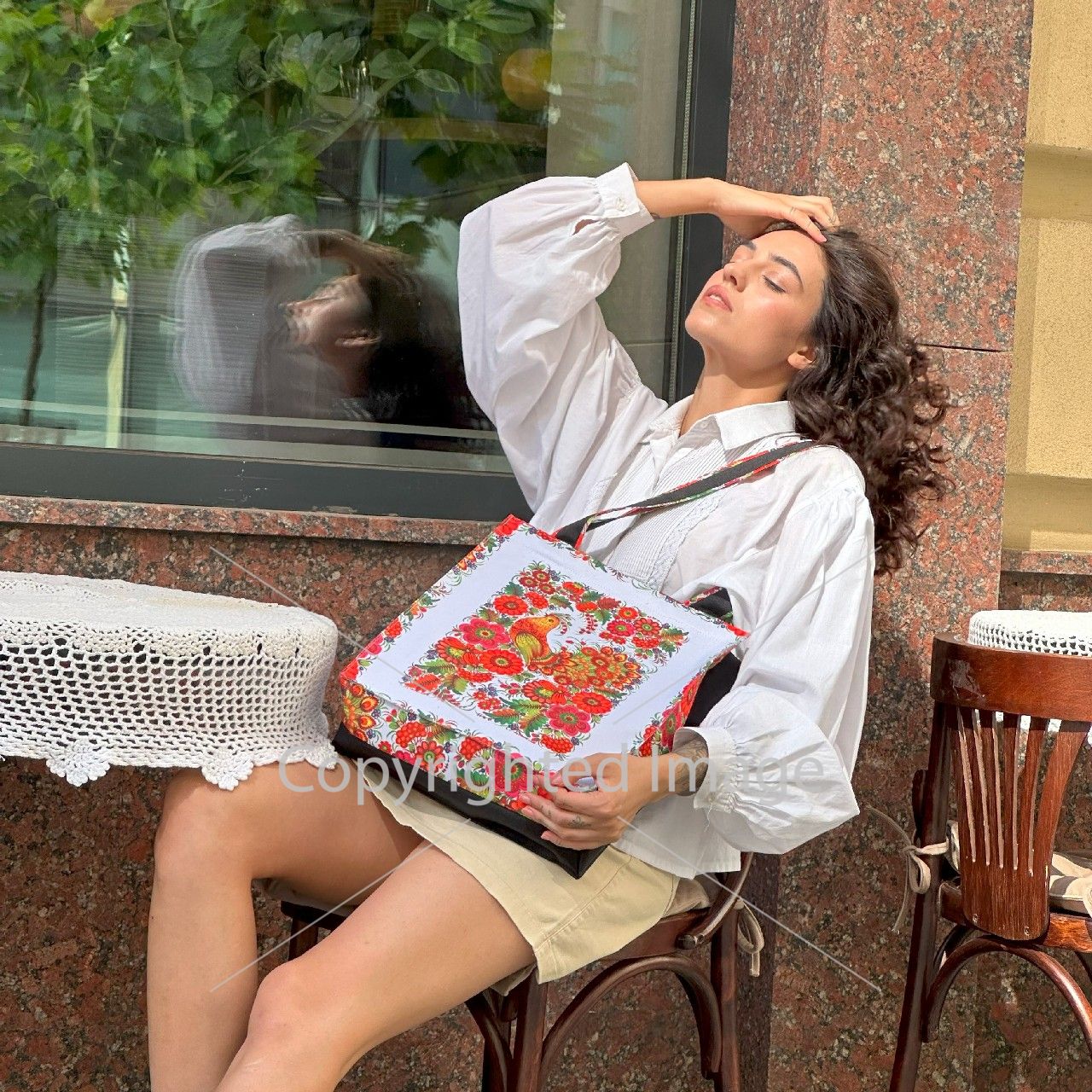 Качественная сумка-шоппер с печатью Петриковской росписью, автор Коваленко Н.И.