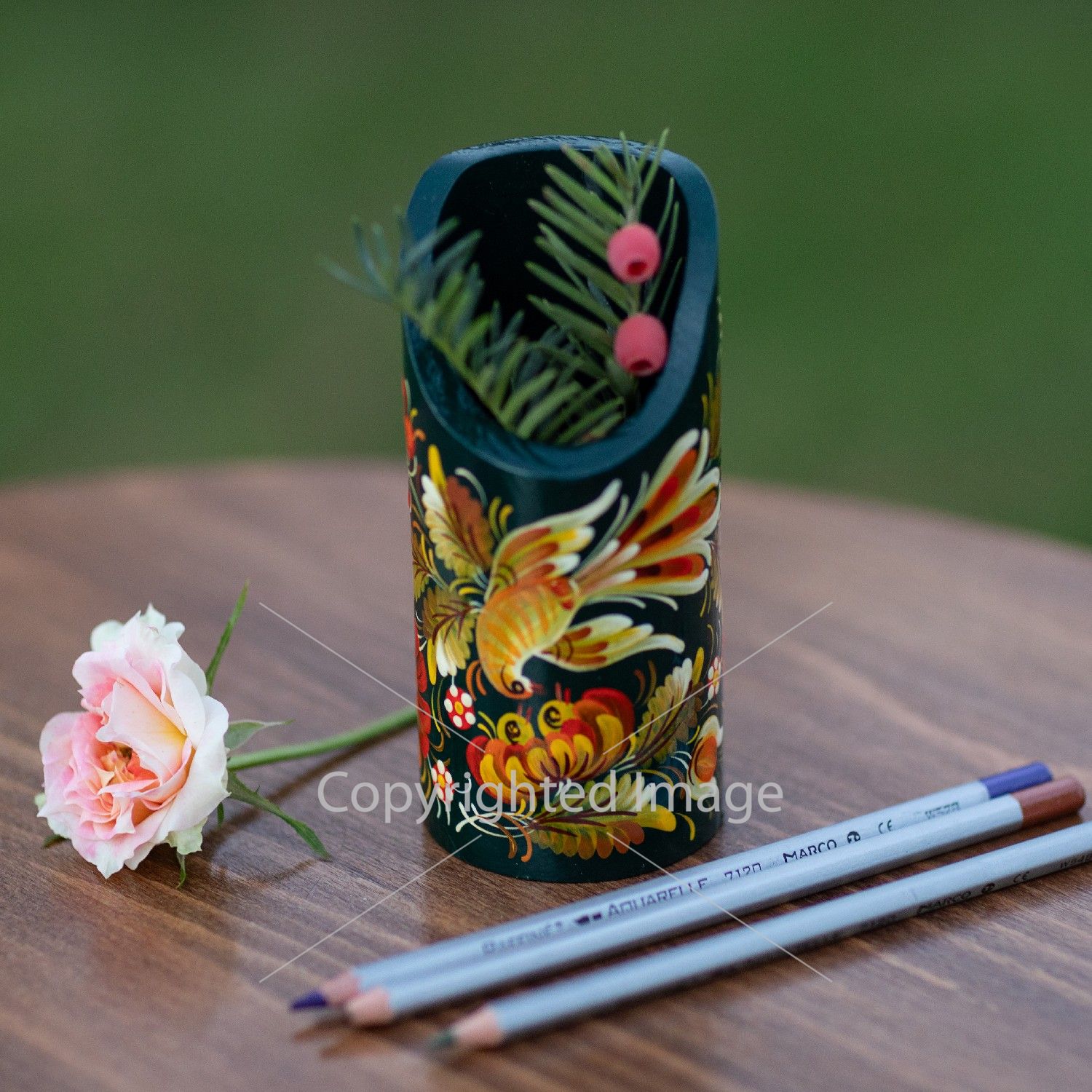 Карандашница, подставка под ручки с Петриковской росписью,"Жар-птица" (02)
