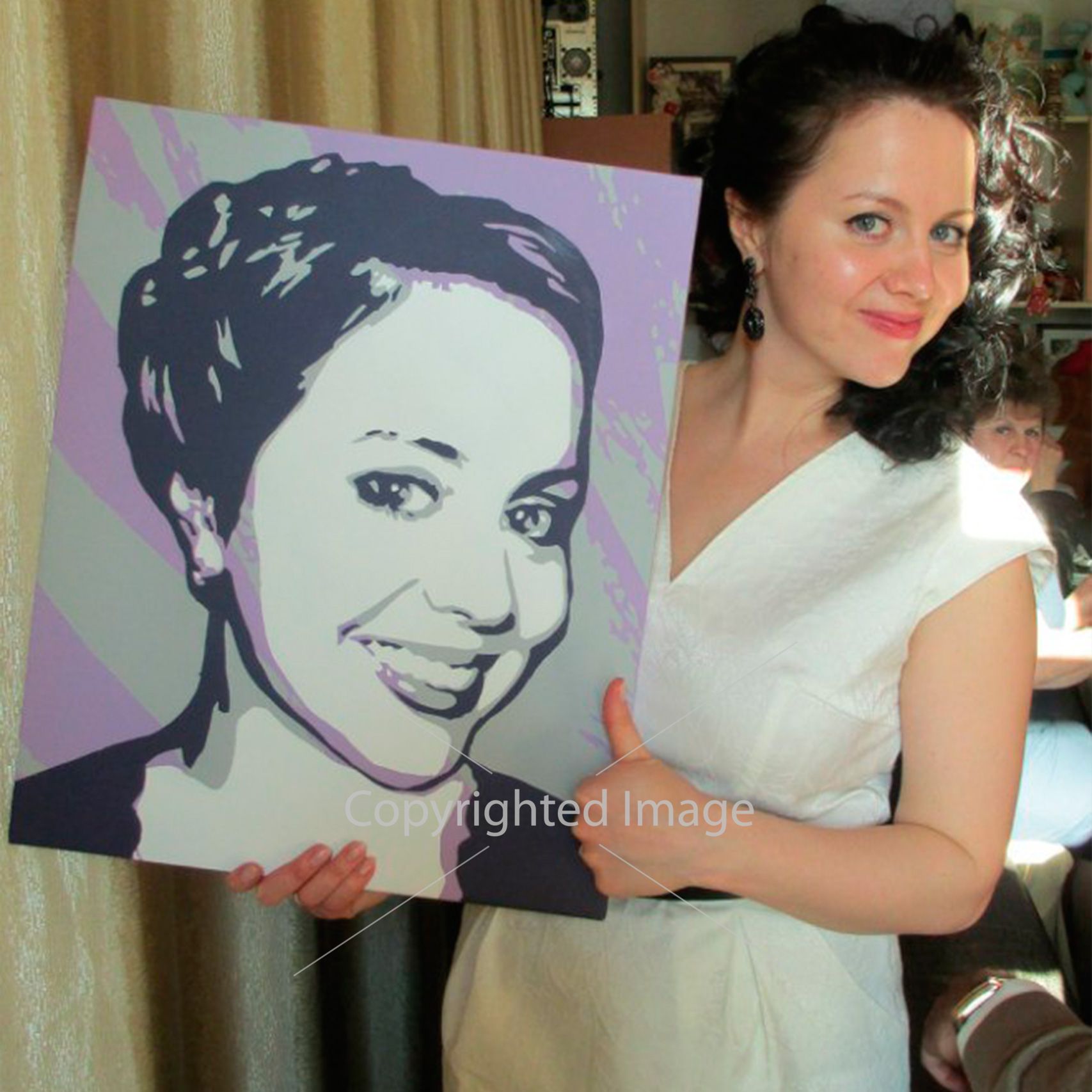 Вы предоставляете нам фотографию, затем художник превращает фотографию в настоящий портрет в стиле поп-арта. Потом макет переносится на холст и подарок готов!