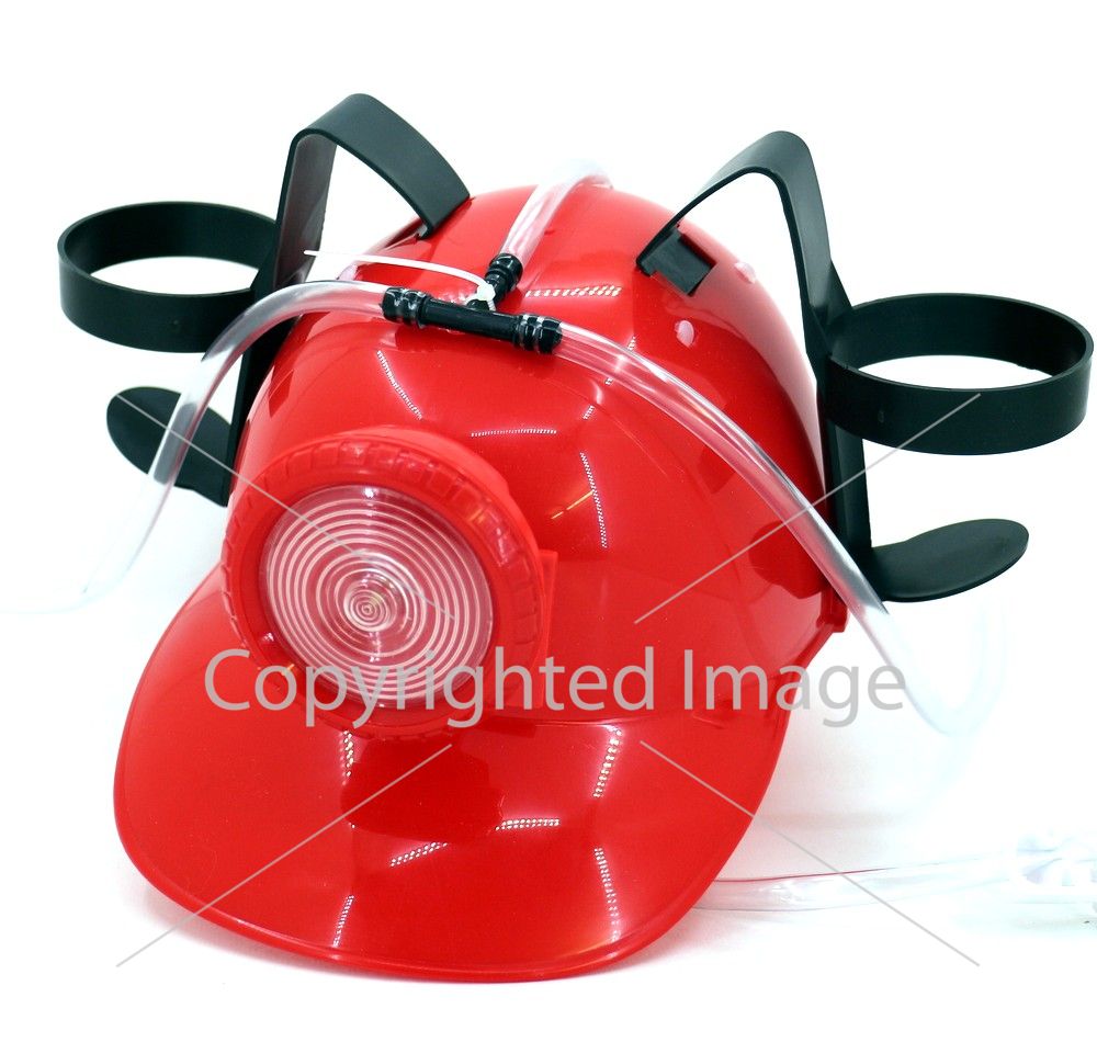 Каска с крепежами для напитков (Пивная каска) с фонариком "МЧС", красная