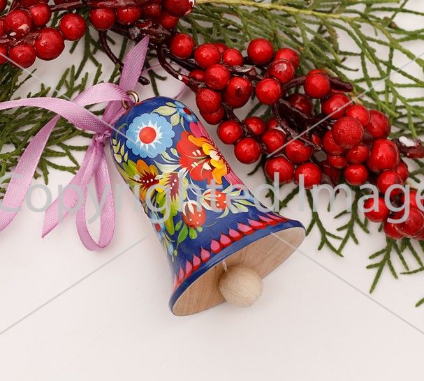 Колокольчик с Петриковской росписью, живые узоры