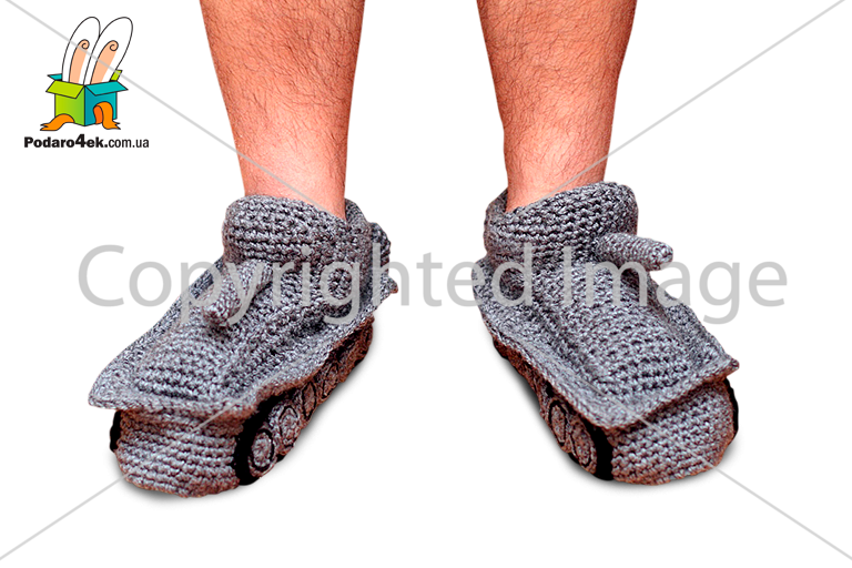 Комнатные тапки-носки "Танчики" (серые), размер 39-41, 40-43, 44-46