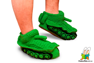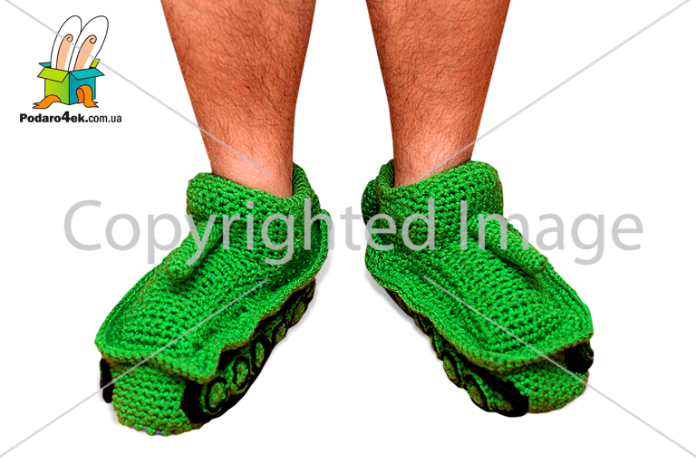 Комнатные тапки-носки "Танчики" (зеленые), размер 39-41, 40-43, 44-46