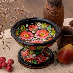 Конфетница-фруктовница на ножке Петриковская роспись (03)