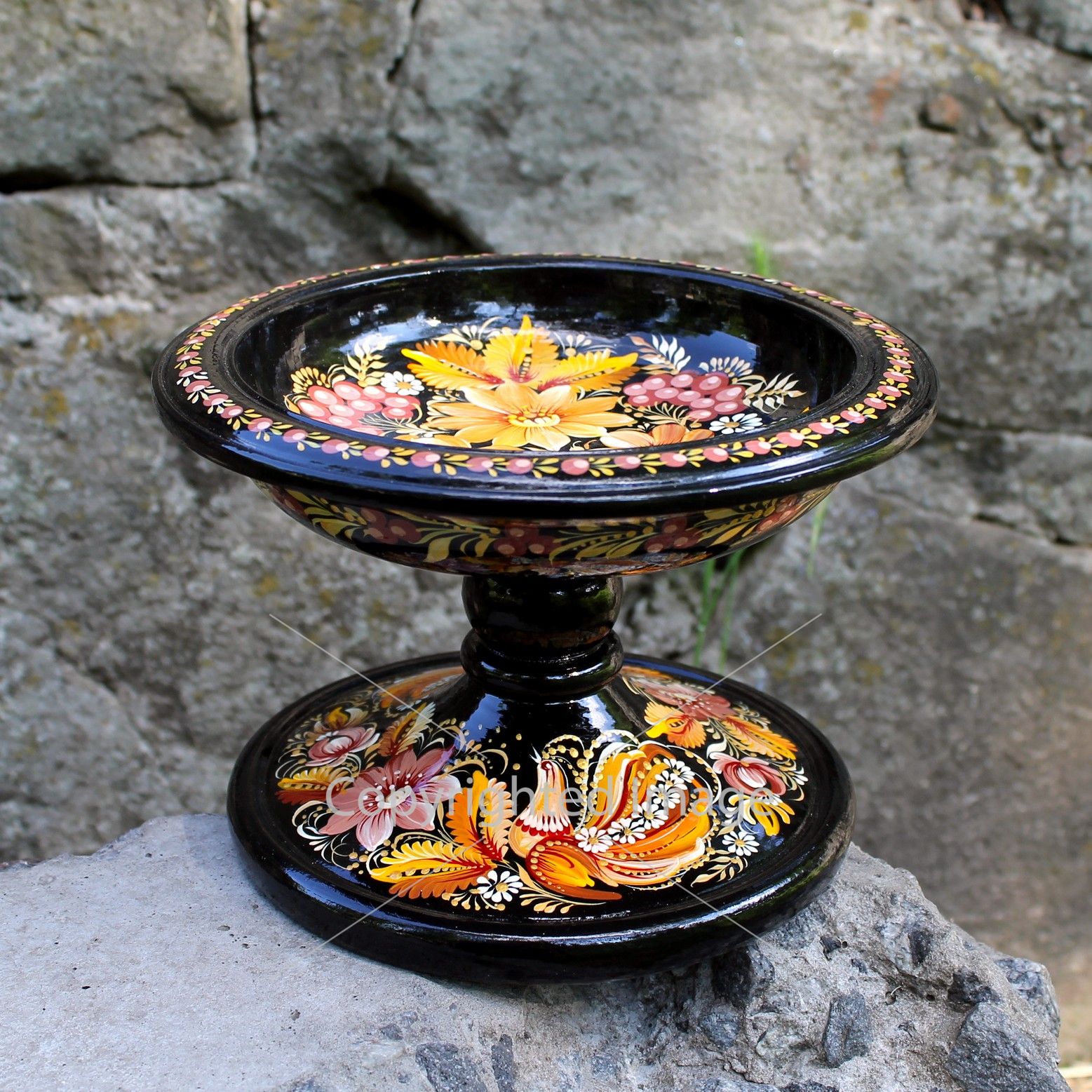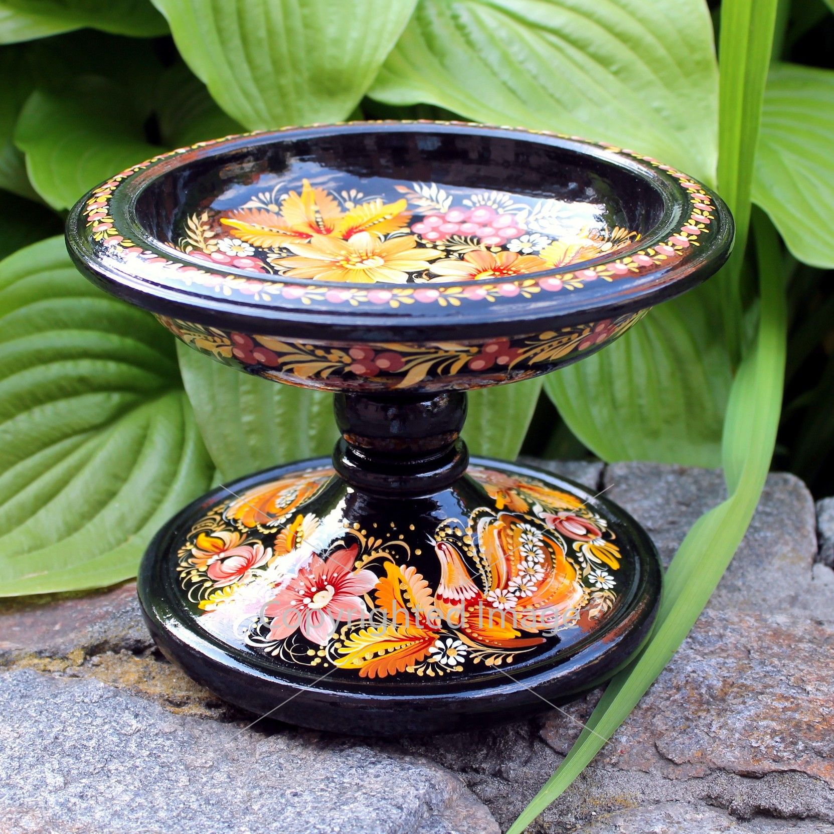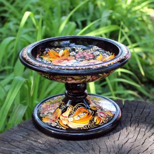 Конфетница-фруктовница на ножке Петриковская роспись "Август"