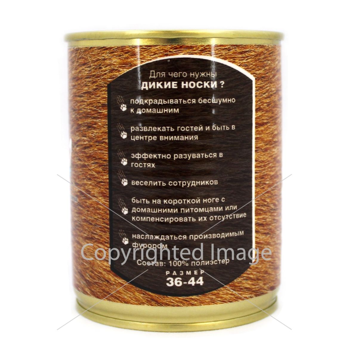 Прикольные носки с ярким принтом, герметично упакованные в консервную банку.