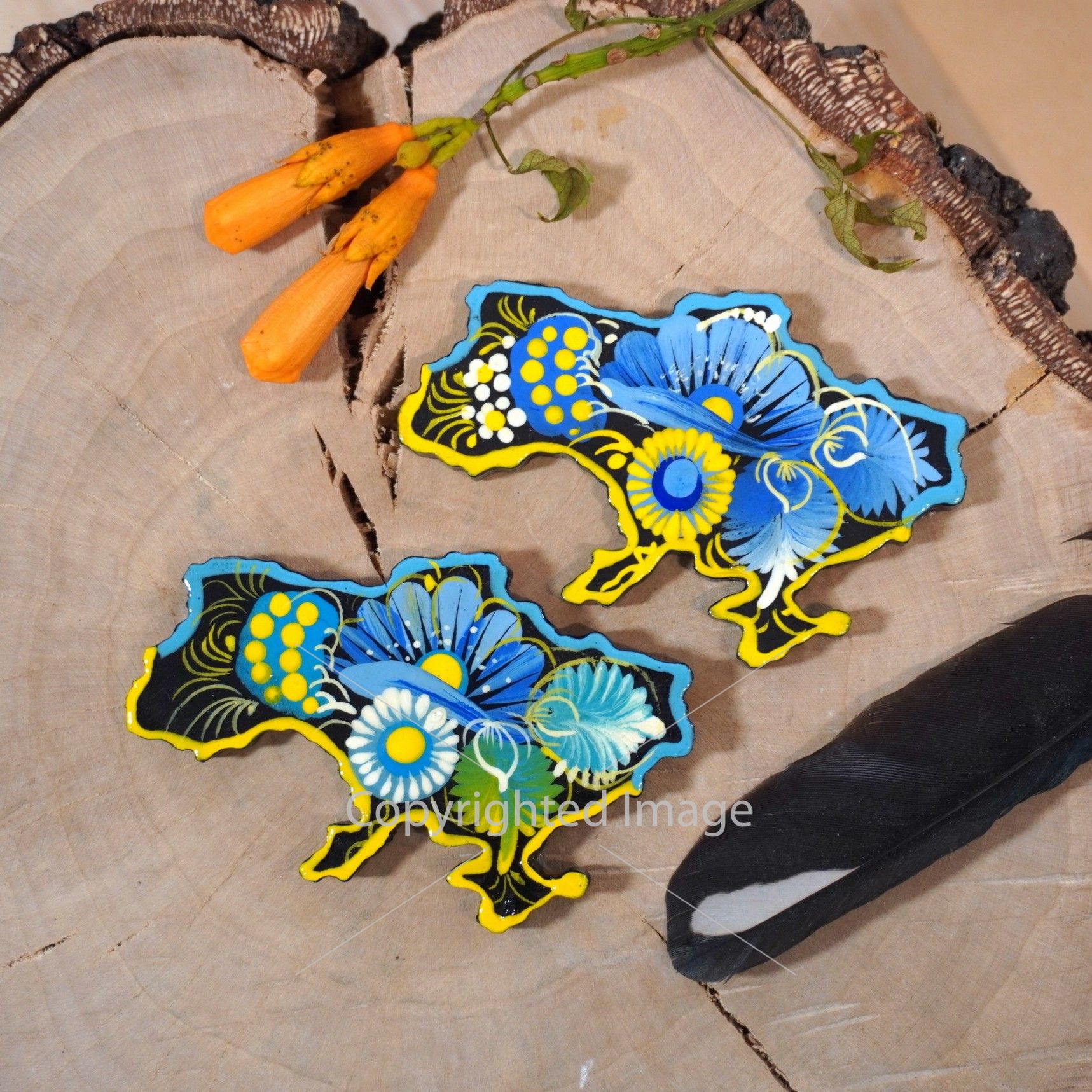 Магнит ручной работы "Жовто-блакитна Україна". Петриковская роспись