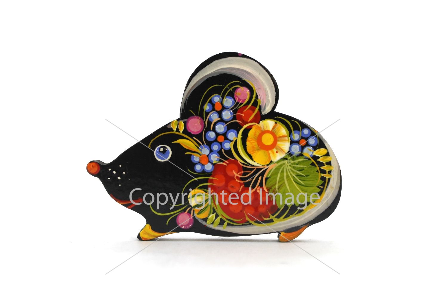 Магнит с Петриковской росписью Мышка нарядная