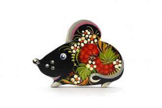 Магнит с Петриковской росписью Мышка, любопытная