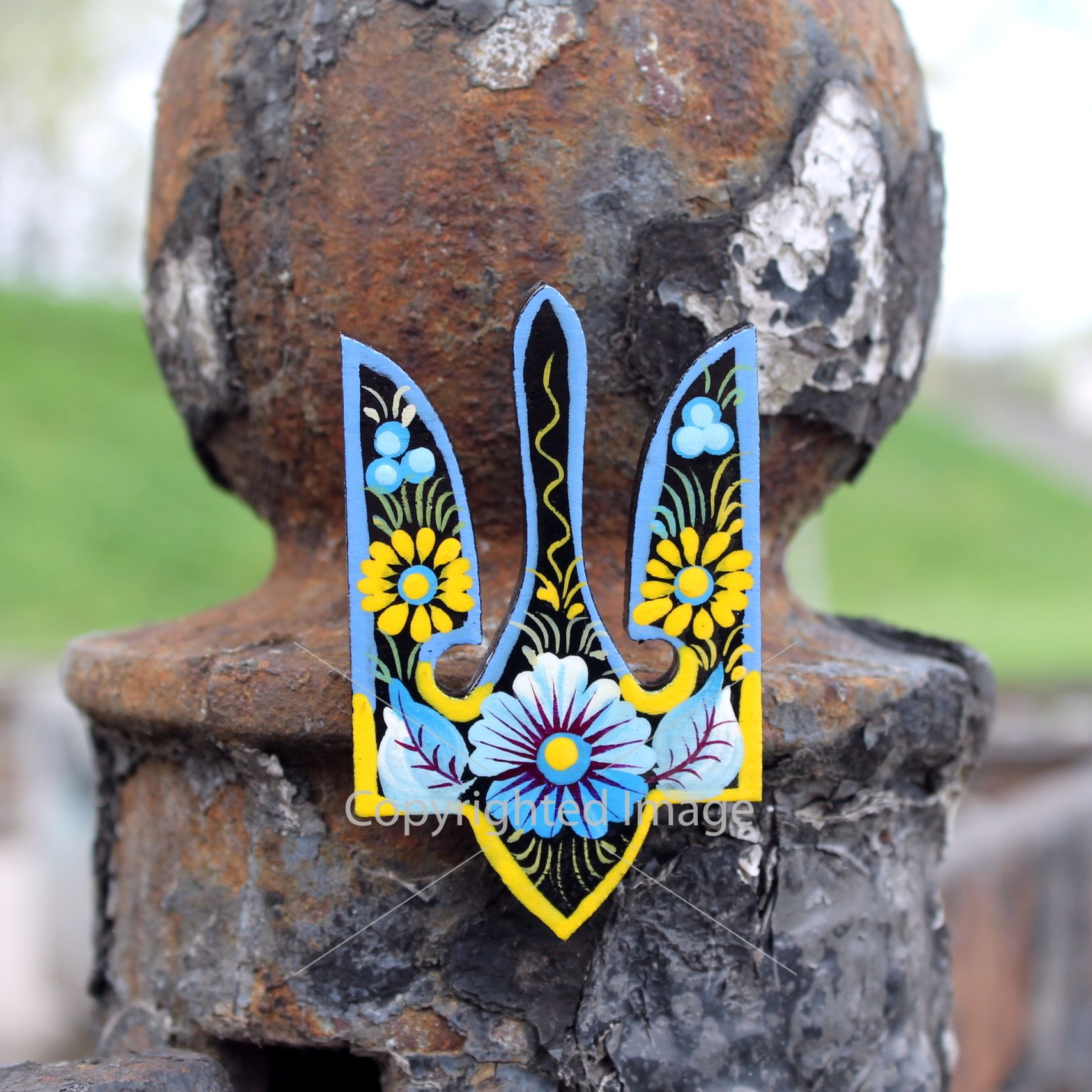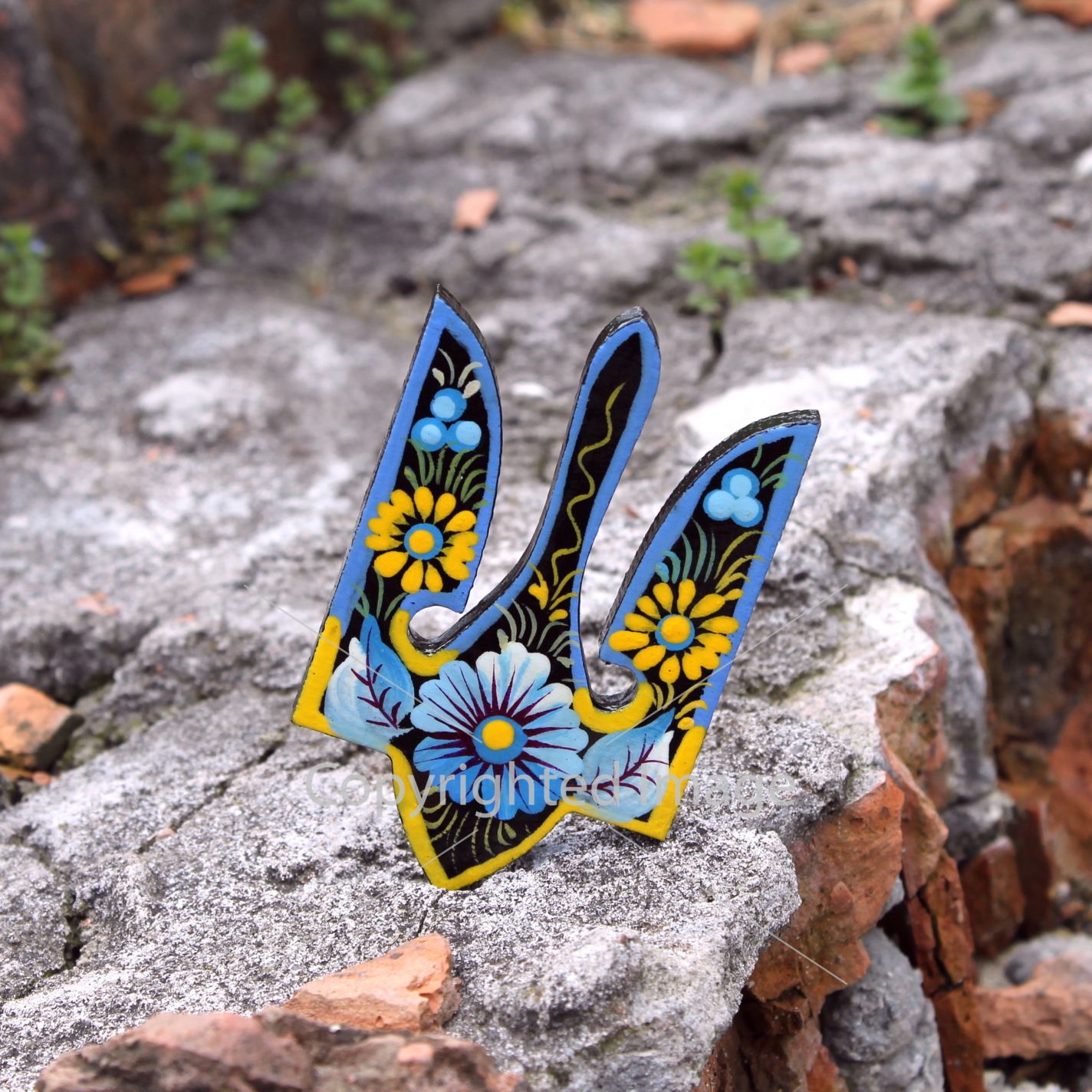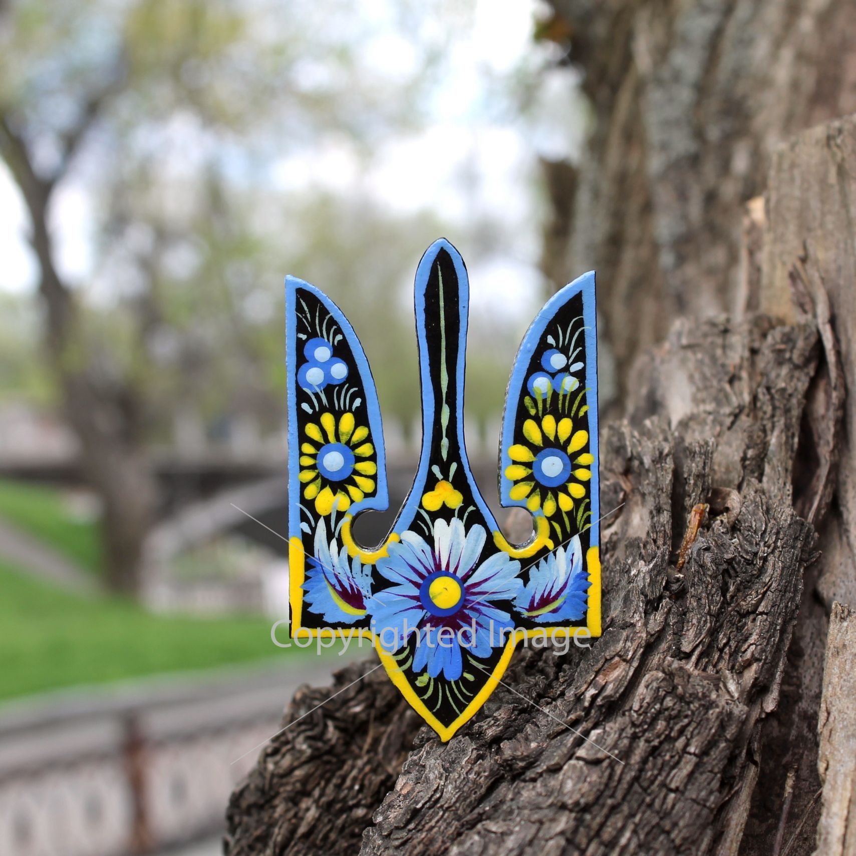 Магнит-сувенир "Трезуб", Петриковская роспись, ручная работа
