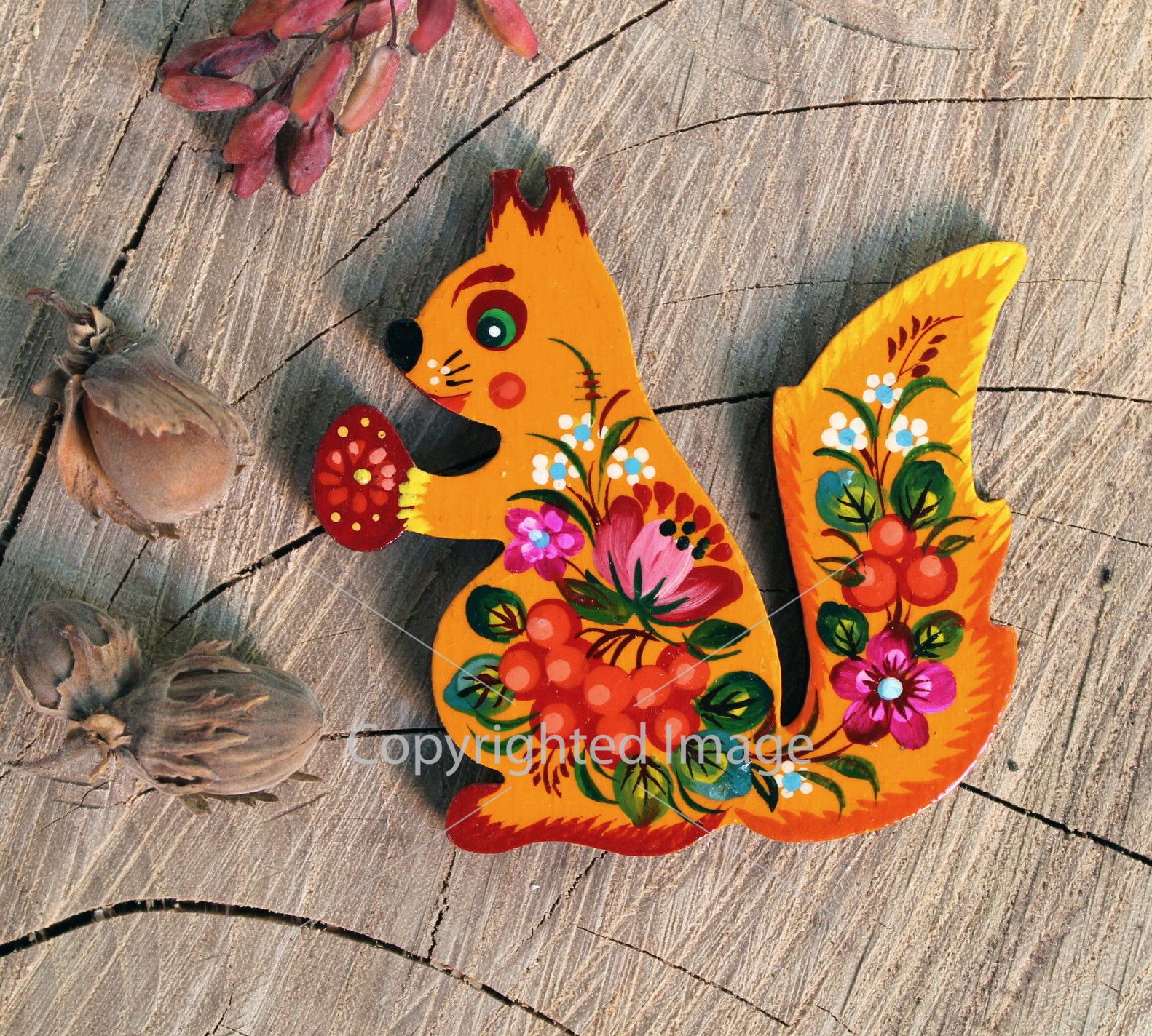 Магнитик на холодильник с Петриковской росписью "Белочка" (02)