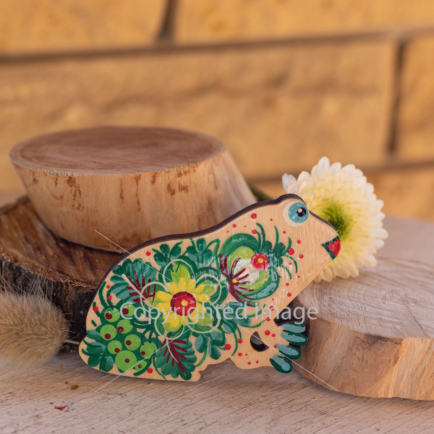 Магнитик на холодильник с Петриковской росписью "Жабка" (03)