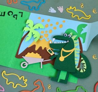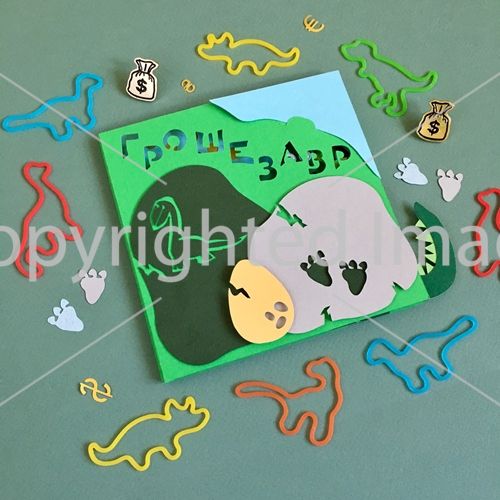 Механическая открытка - сюрприз "Грошезавр"