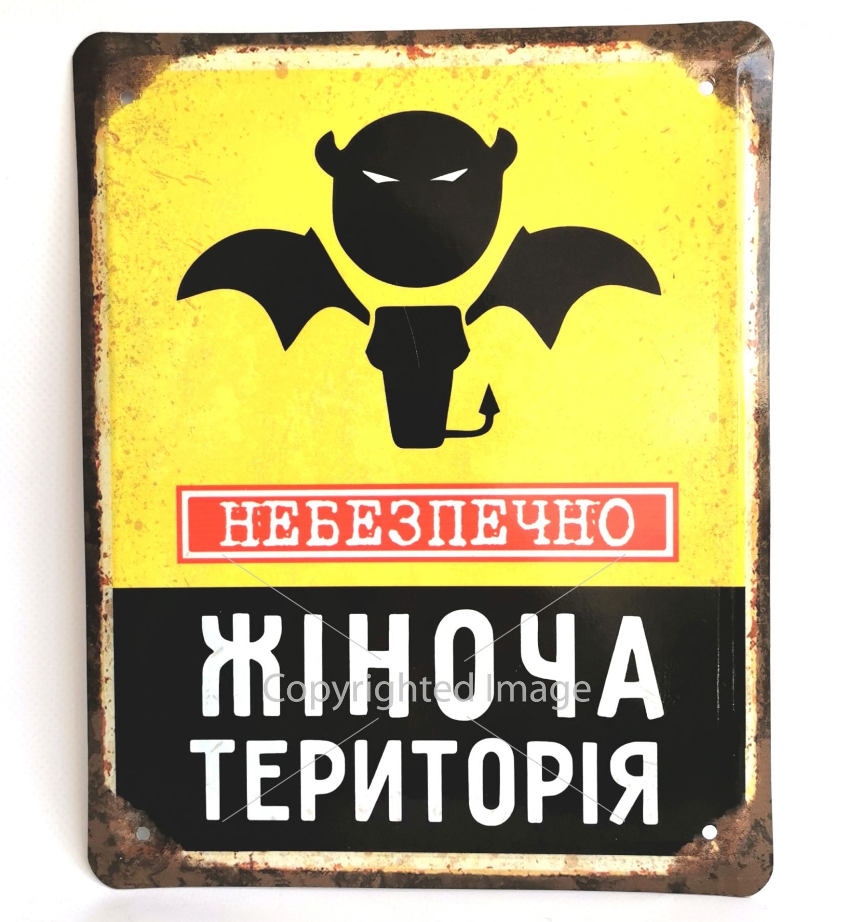 Металлическая табличка "Небезпечно! Жiноча територiя"