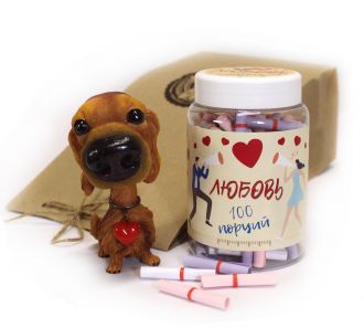 - Баночка с веселыми и красивыми репликами о любви, скрученными в свитки.