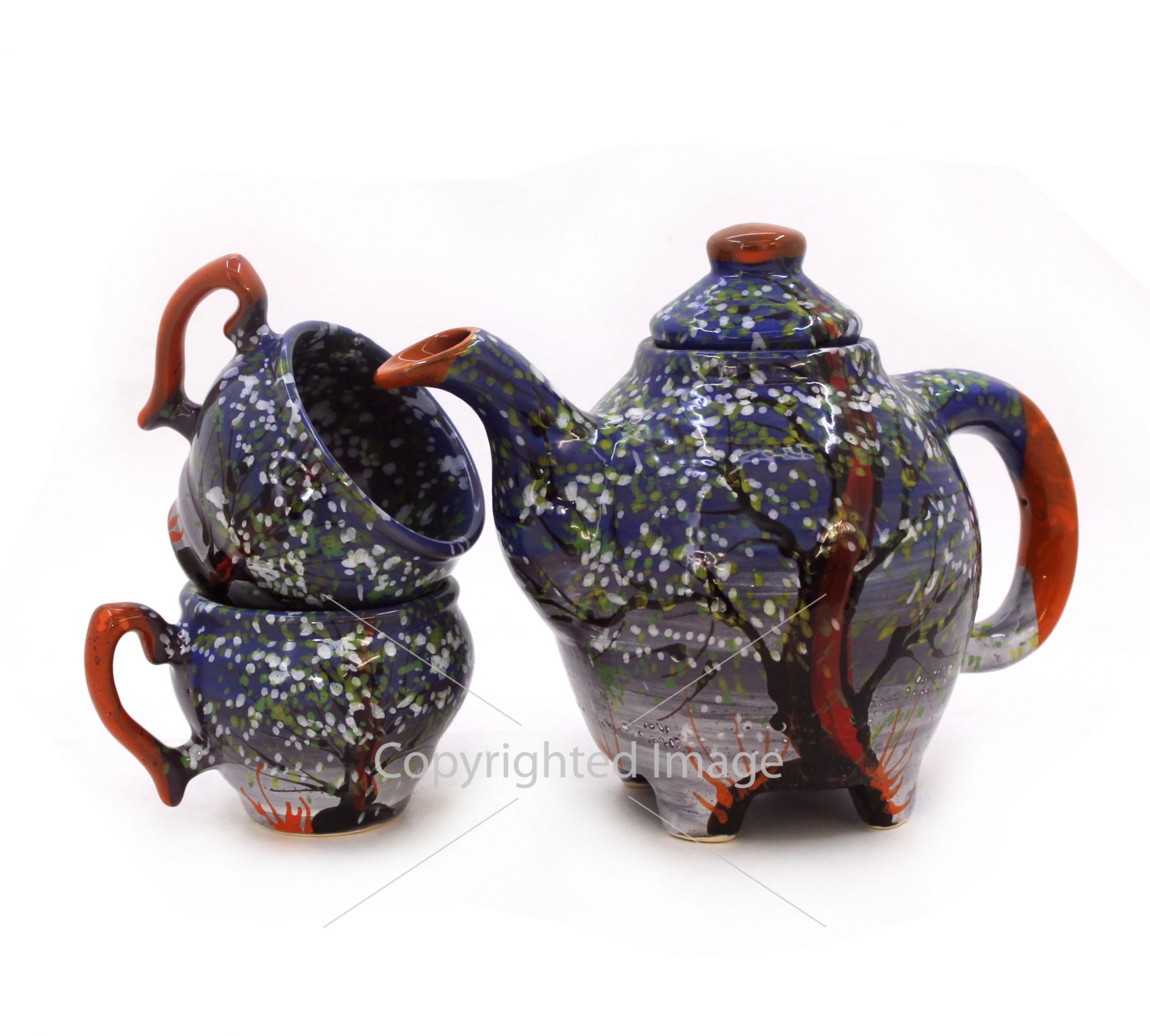 Набор состоит из чайника и двух чашек, которые можно и нужно использовать по назначению!