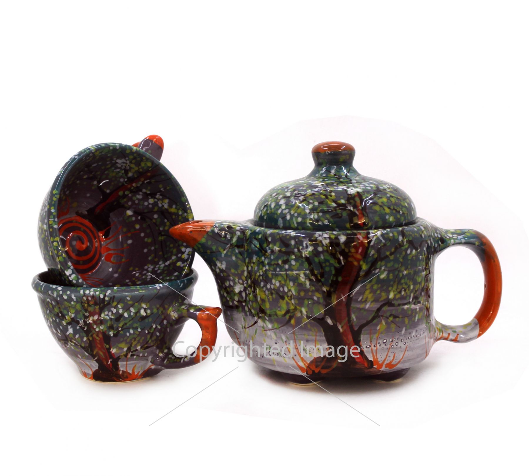 Набор состоит из чайника и двух чашек, которые можно и нужно использовать по назначению!