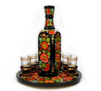 Набор для спиртных напитков "Панський". Ручная работа. Петриковская роспись