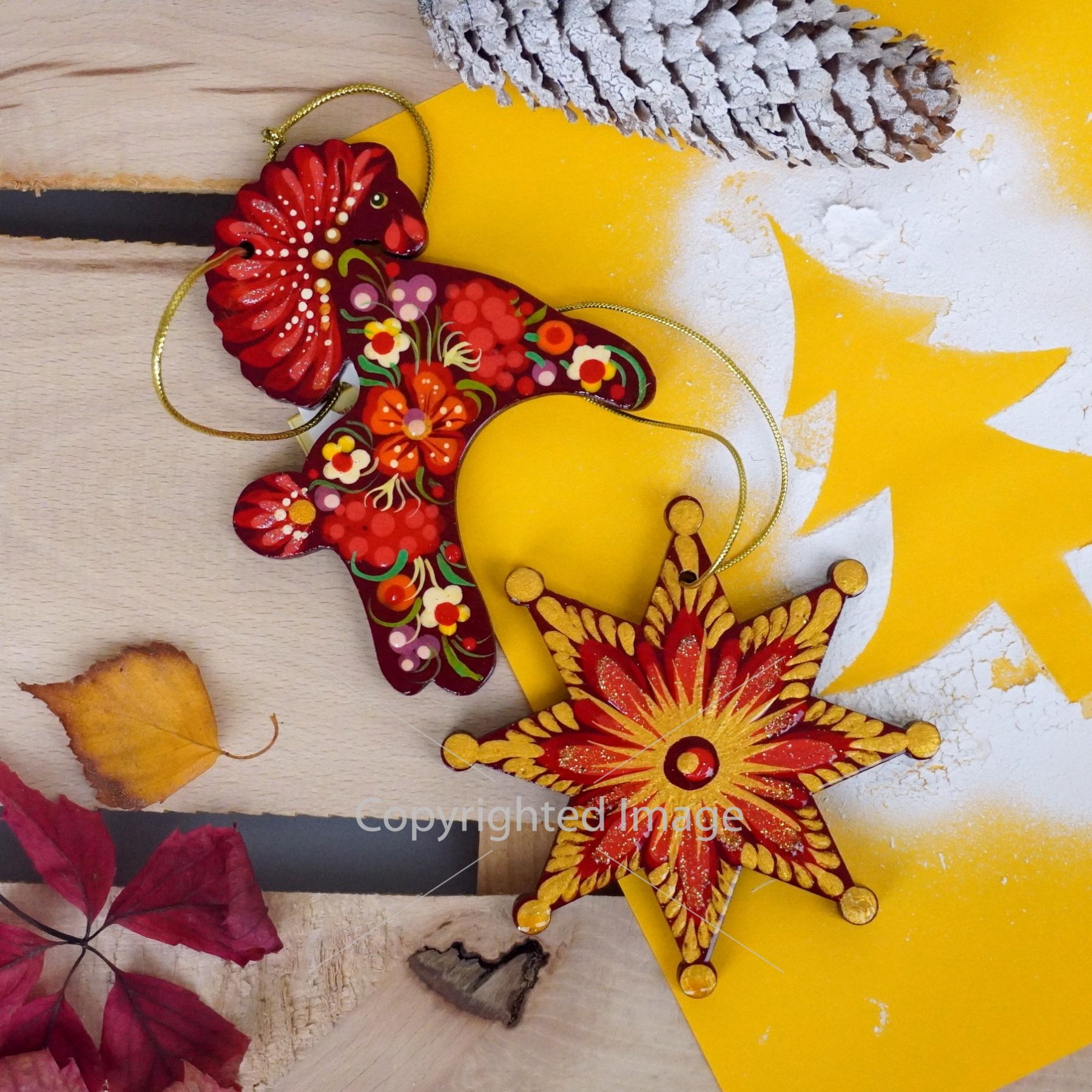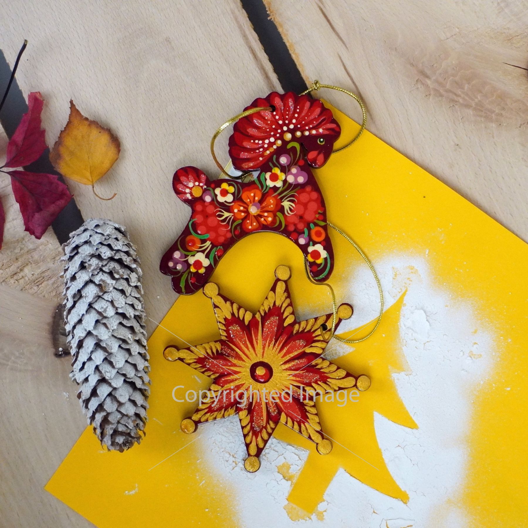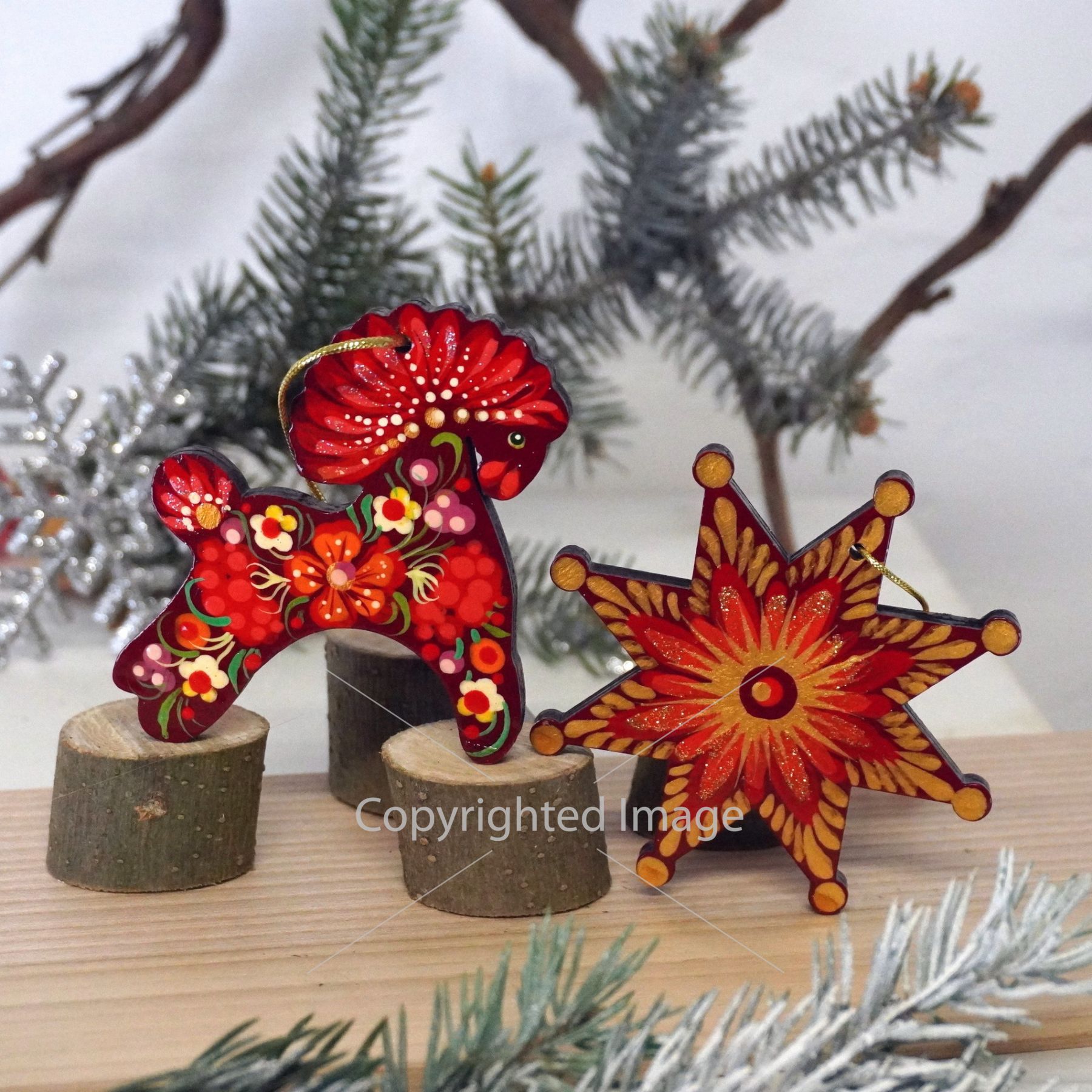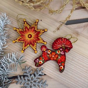 Набор елочных игрушек с Петриковской росписью "Лошадка и звездочка"