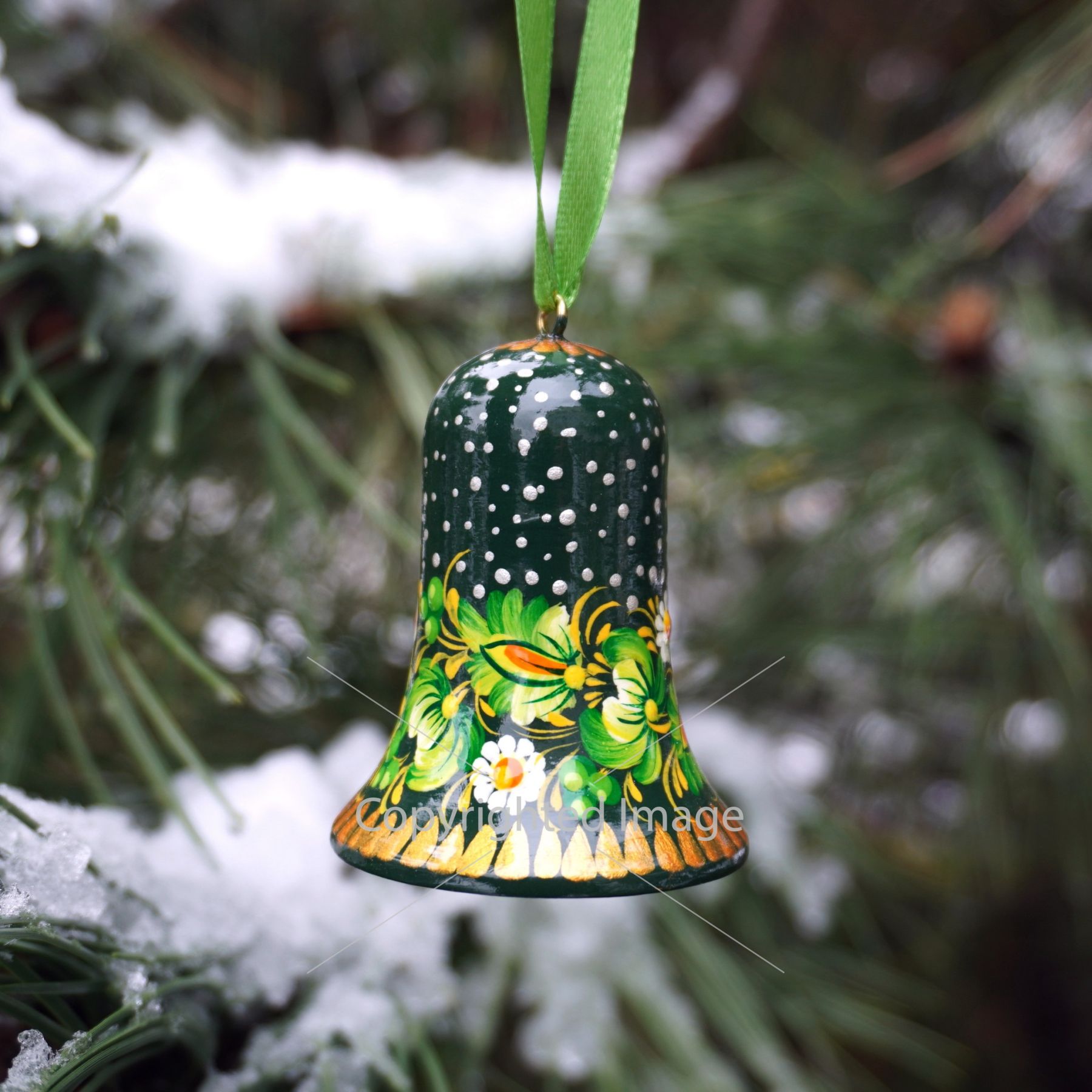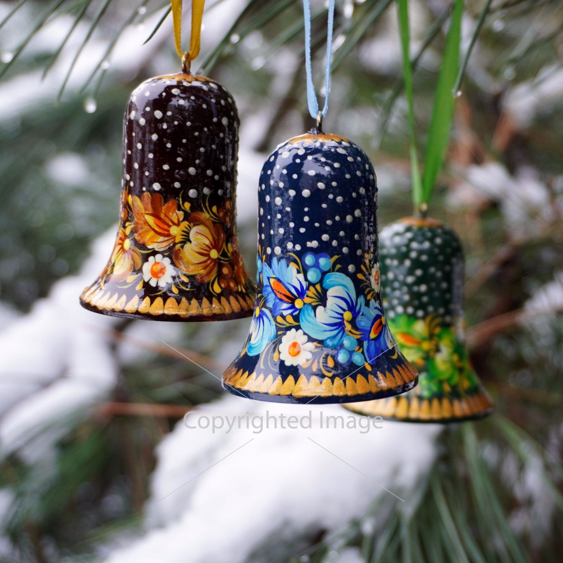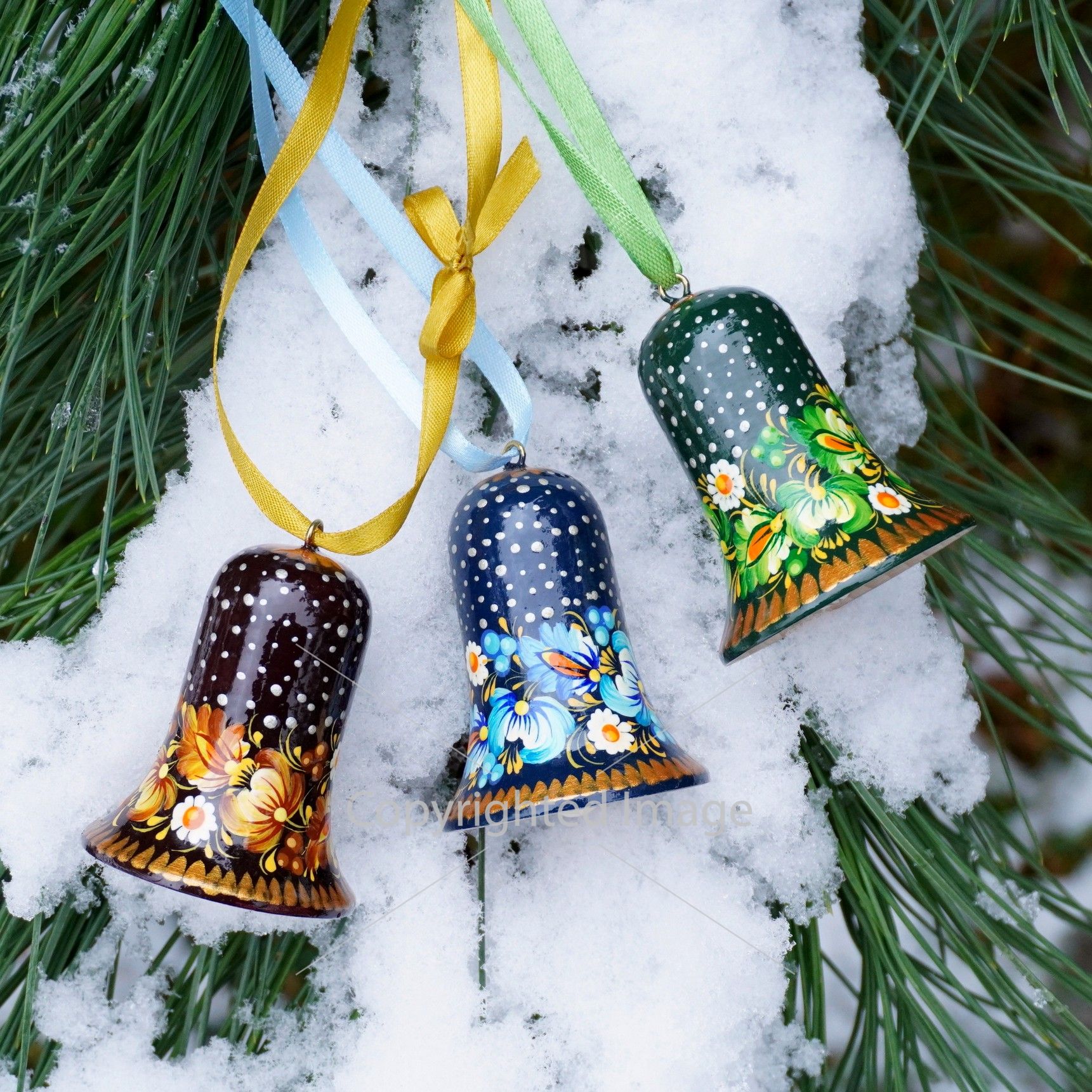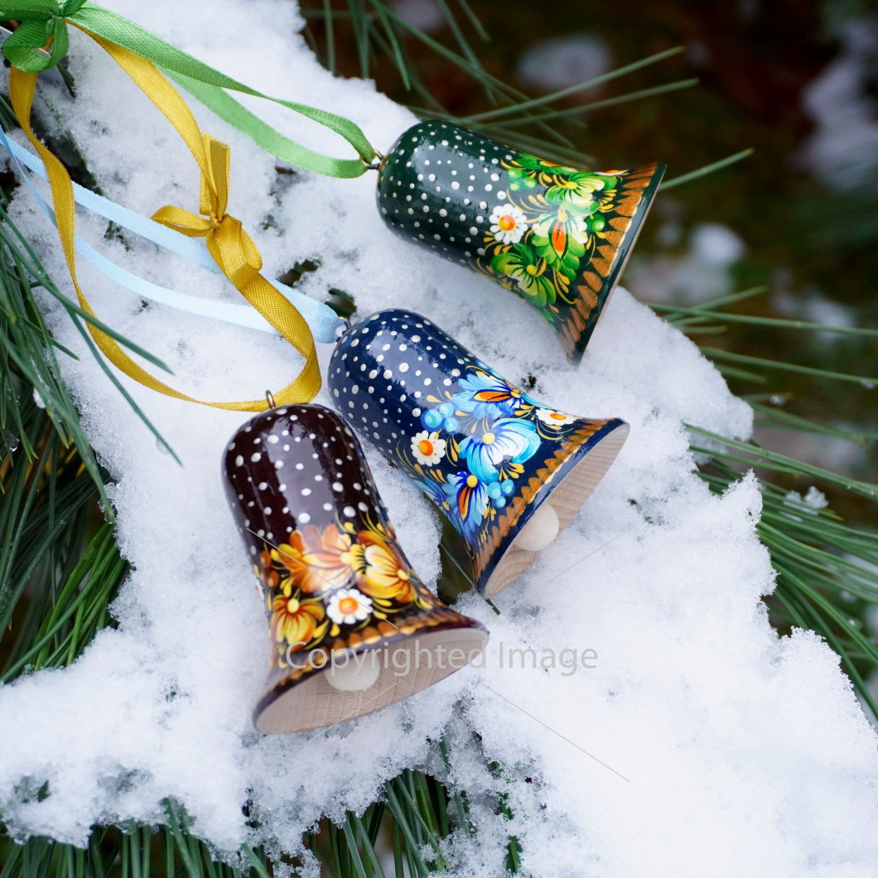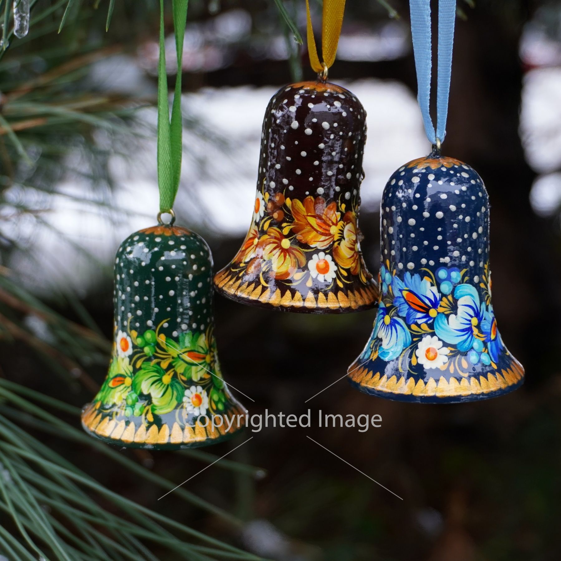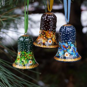 Набор елочных игрушек с Петриковской росписью "Рождественские колокольчики"
