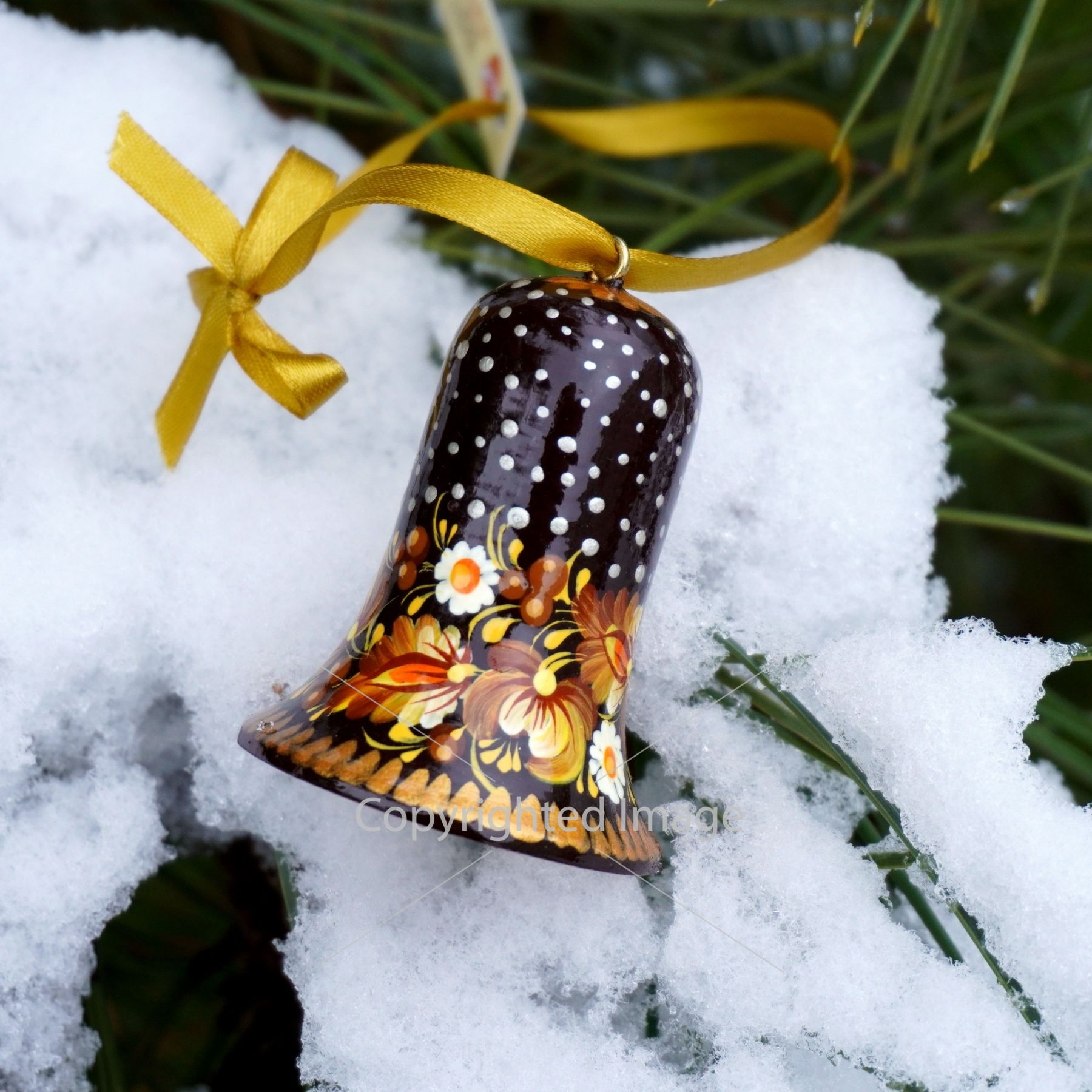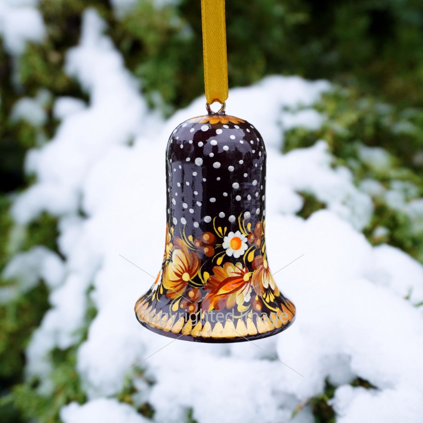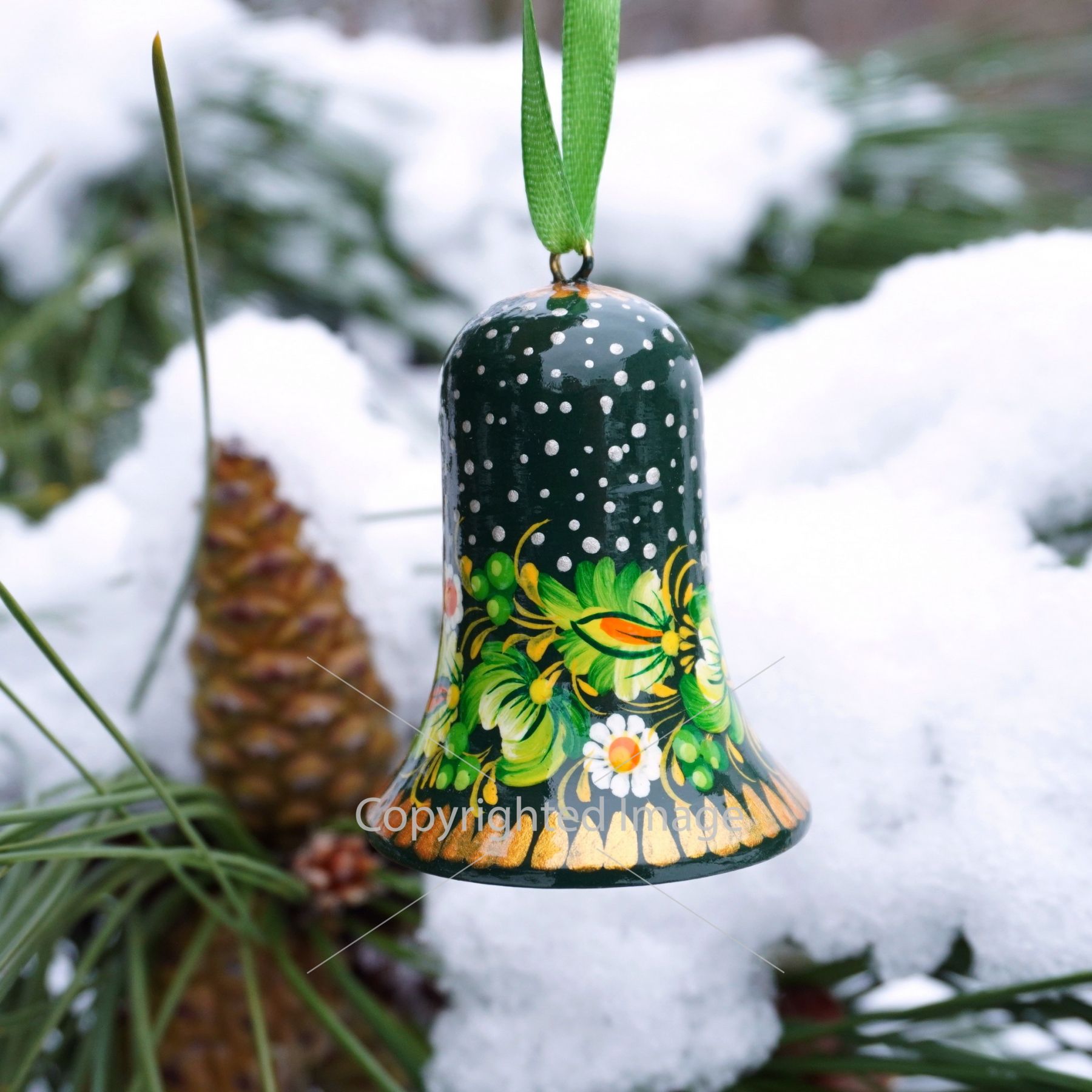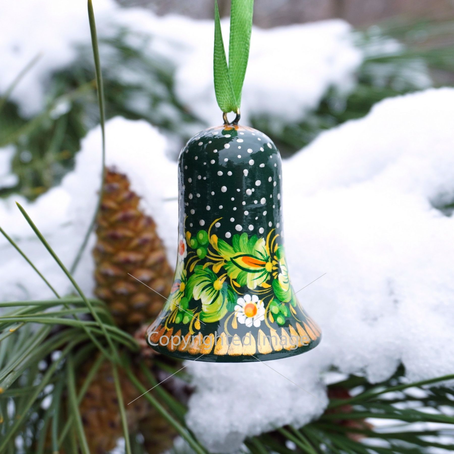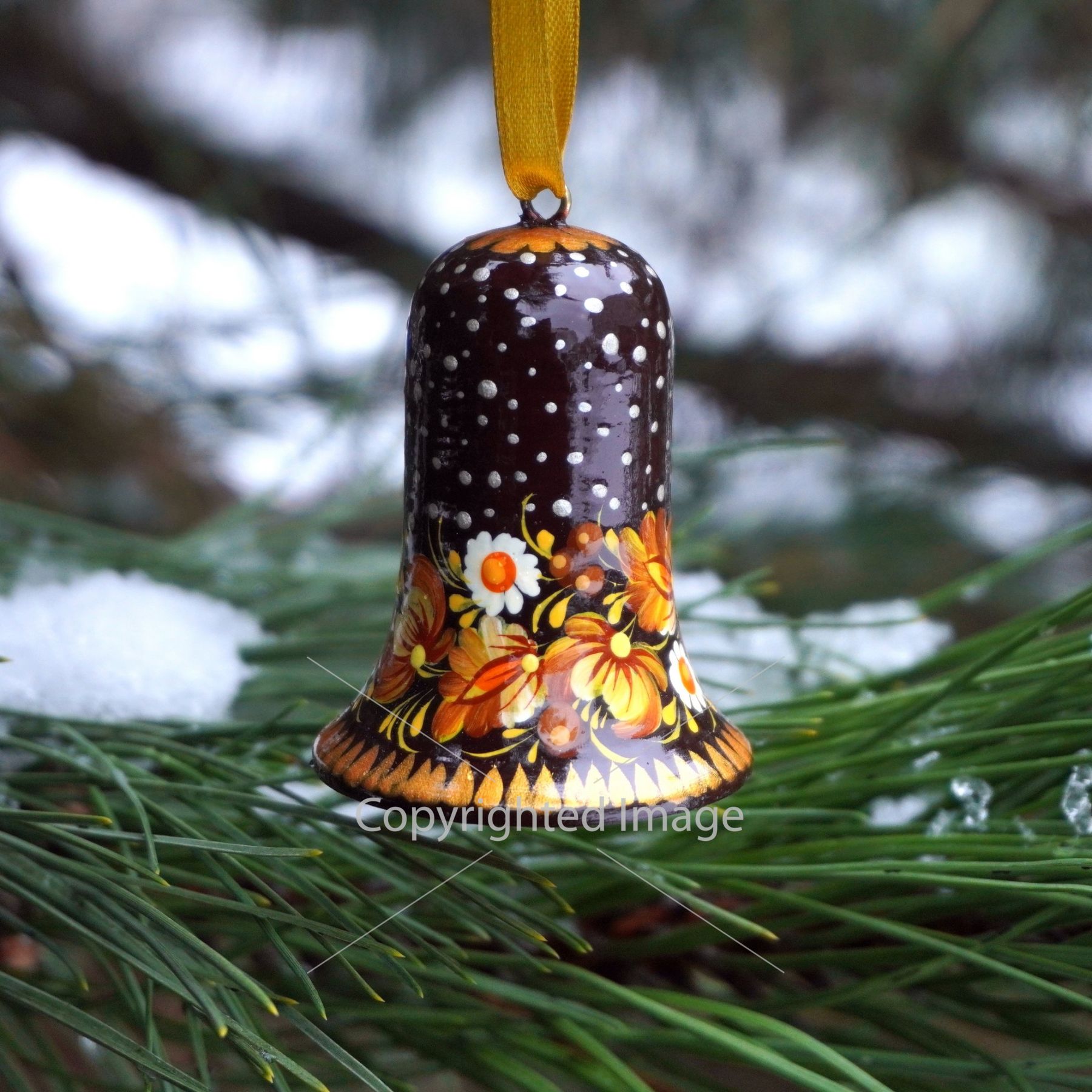 Набор елочных игрушек с Петриковской росписью "Рождественские колокольчики"