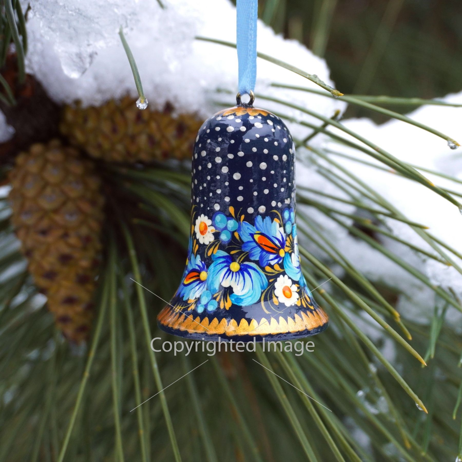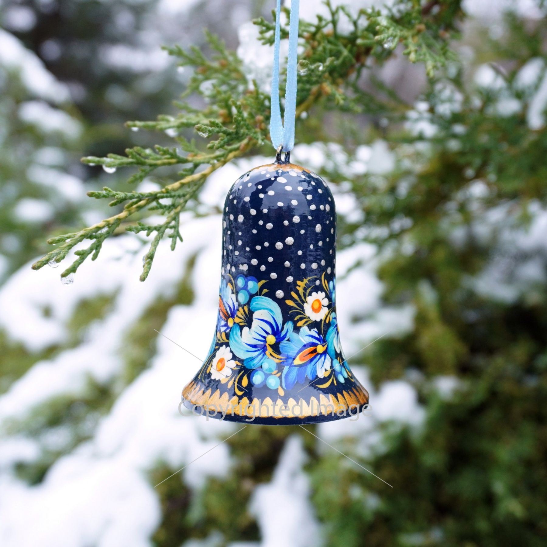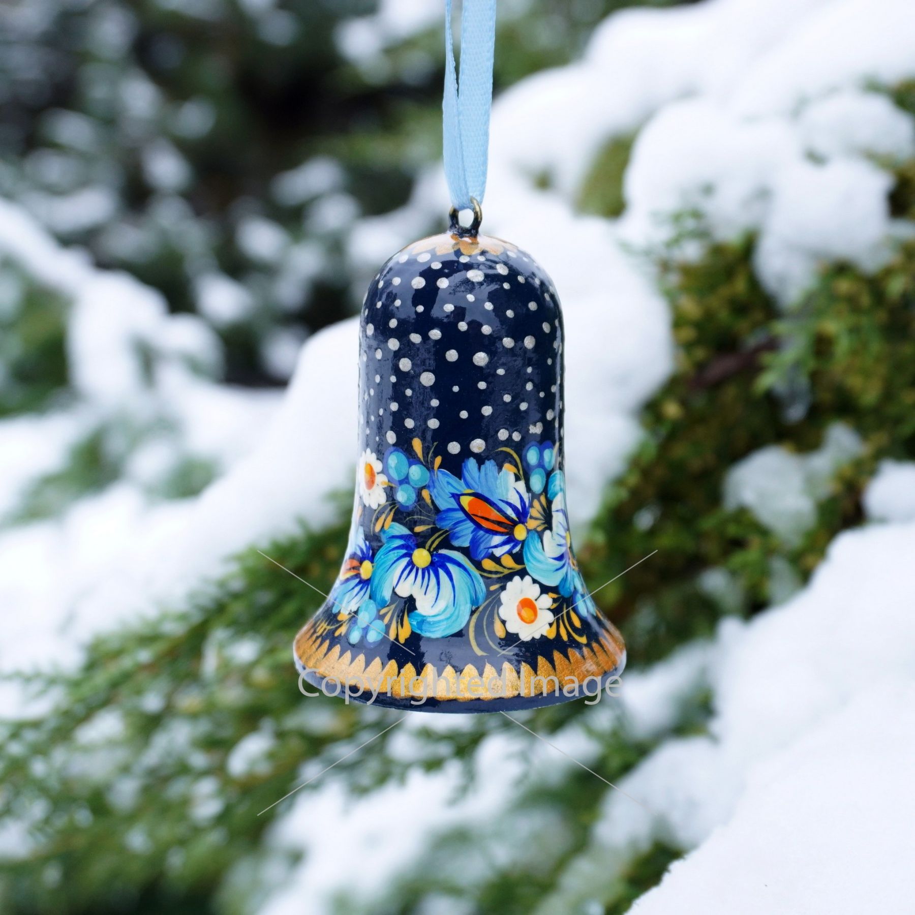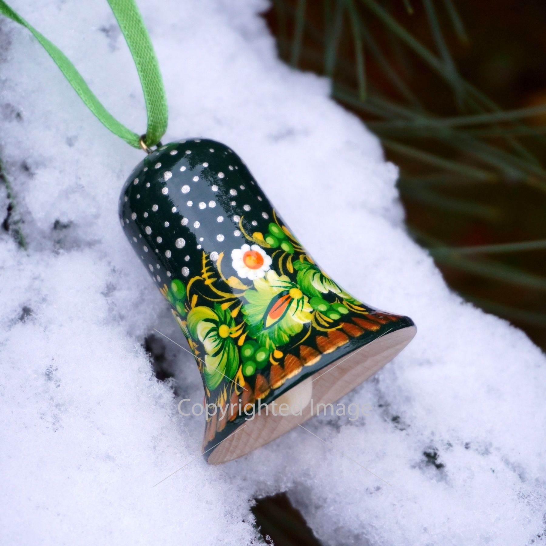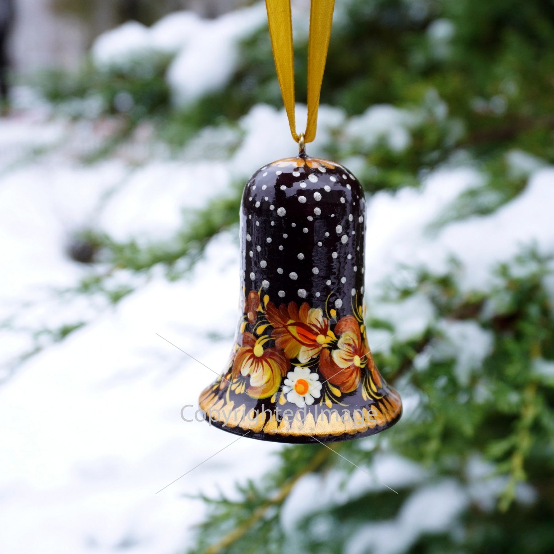 Набор елочных игрушек с Петриковской росписью "Рождественские колокольчики"