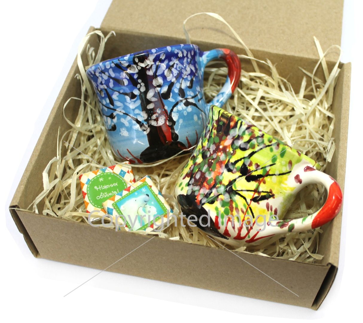 Набор кофейных чашек с шоколадными пожеланиями "Зима-лето"
