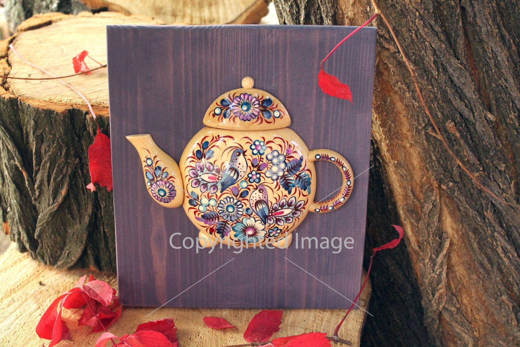 Настенное украшение для кухни или столовой "Чайник" с художественной росписью (01)