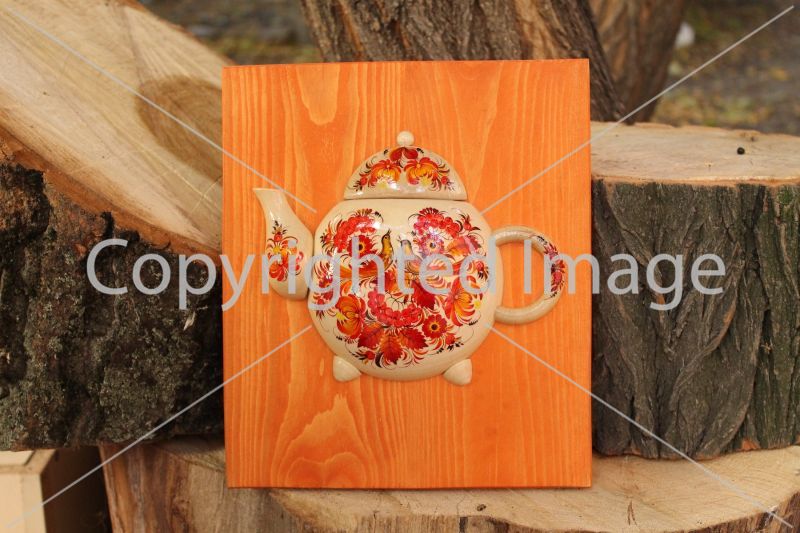 Настенное украшение для кухни или столовой "Чайник" с художественной росписью