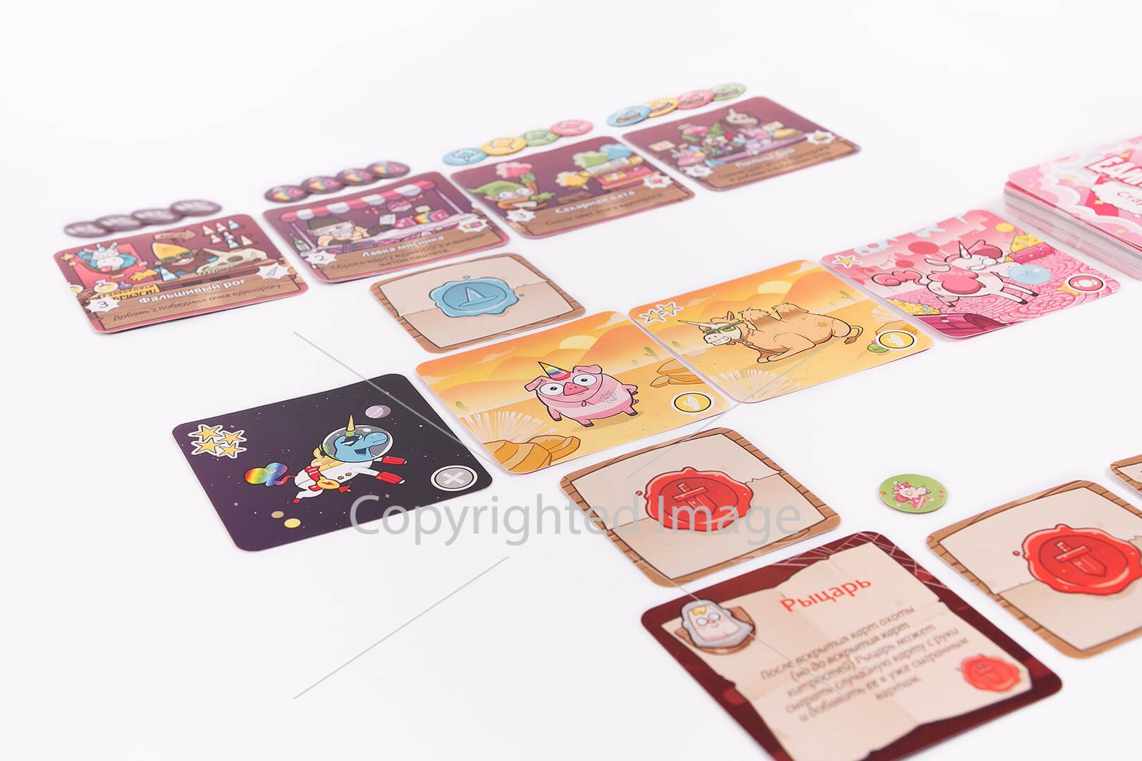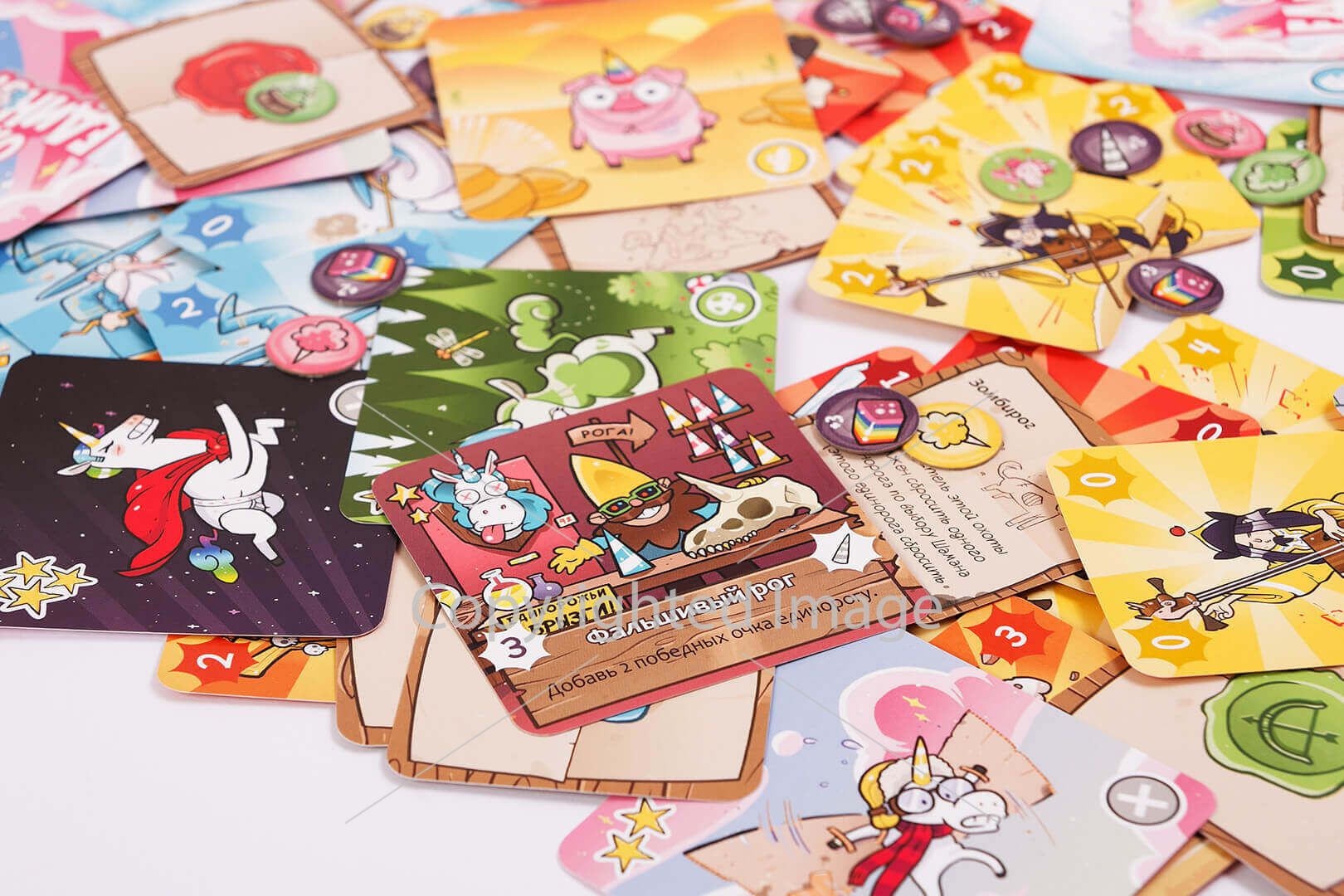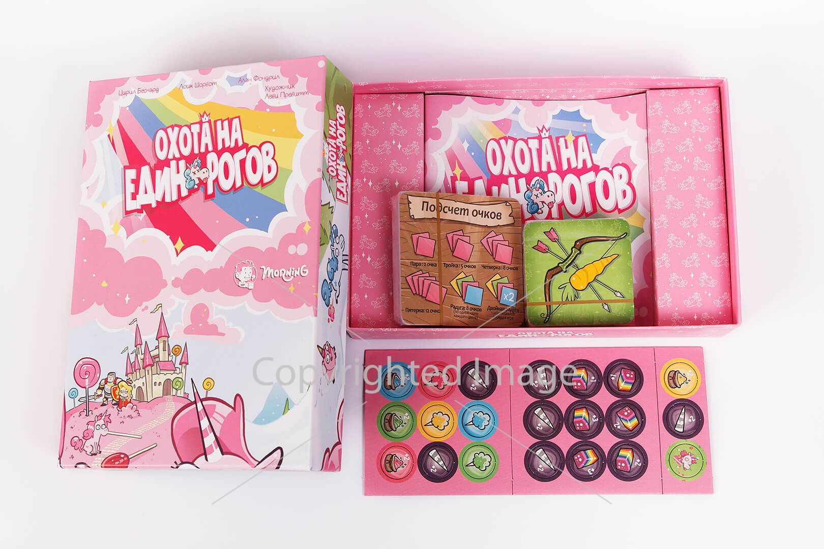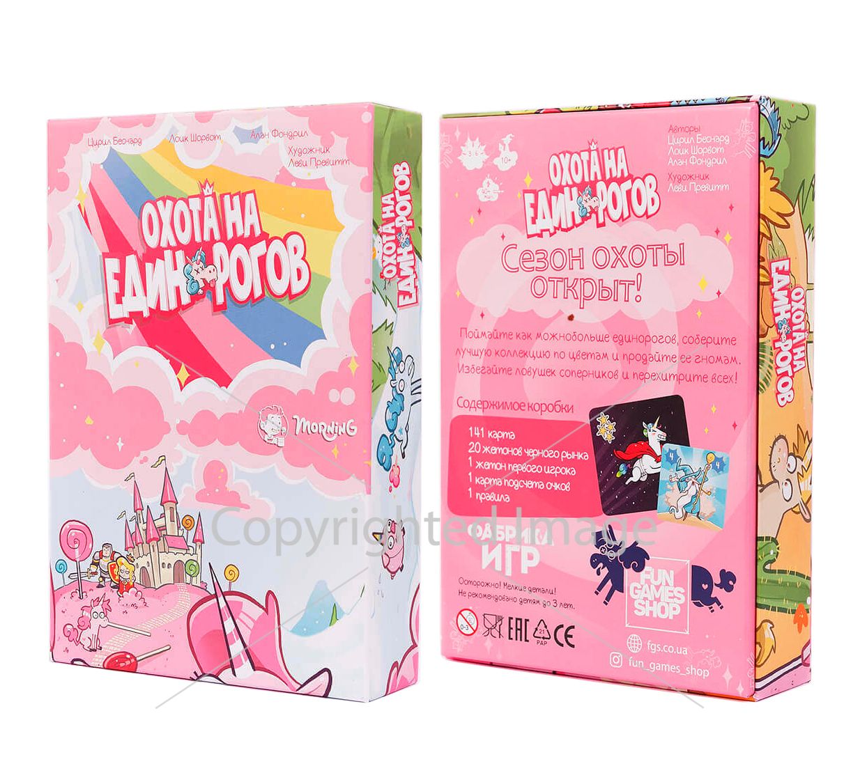 Хотите весело провести время с друзьями или детьми? Жутко веселое или радостно-пакостное настроение? Открывайте коробочку. Ловите как можно больше единорогов, собирайте лучшую коллекцию по цветам и продавайте ее гномам. Избегайте ловушек соперников и перехитрите всех! Блеф и хитрость решают. Игра проходит в четыре раунда (дня). В конце последнего дня игроки подсчитывают победные очки за пойманных единорогов и собранные коллекции. Игрок с наибольшим количеством очков становится победителем.