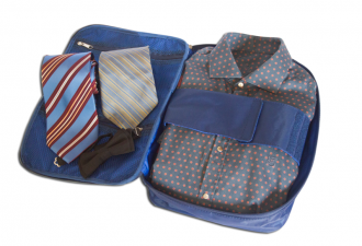 Представляем практичный подарок для делового человека – органайзер для рубашек! Складываем поглаженные и готовые к носке рубашки в органайзер из водонепроницаемого нейлона, в отдельный отсек кладем галстуки/бабочки, застегиваем круговую молнию, и Ваши вещи будут в отличном состоянии, а Вы готовы к бизнес-свершениям!