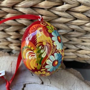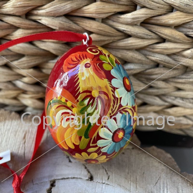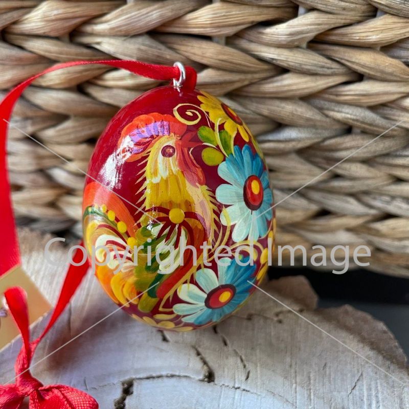 Пасхальное яйцо (писанка) с подвеской "Петушок" яркий на красном