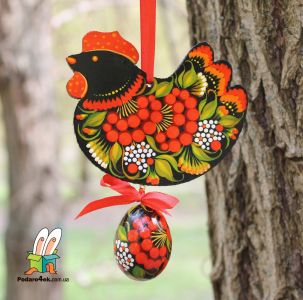 Пасхальный декор " Курочка с пасхальным яйцом" подвеска 05