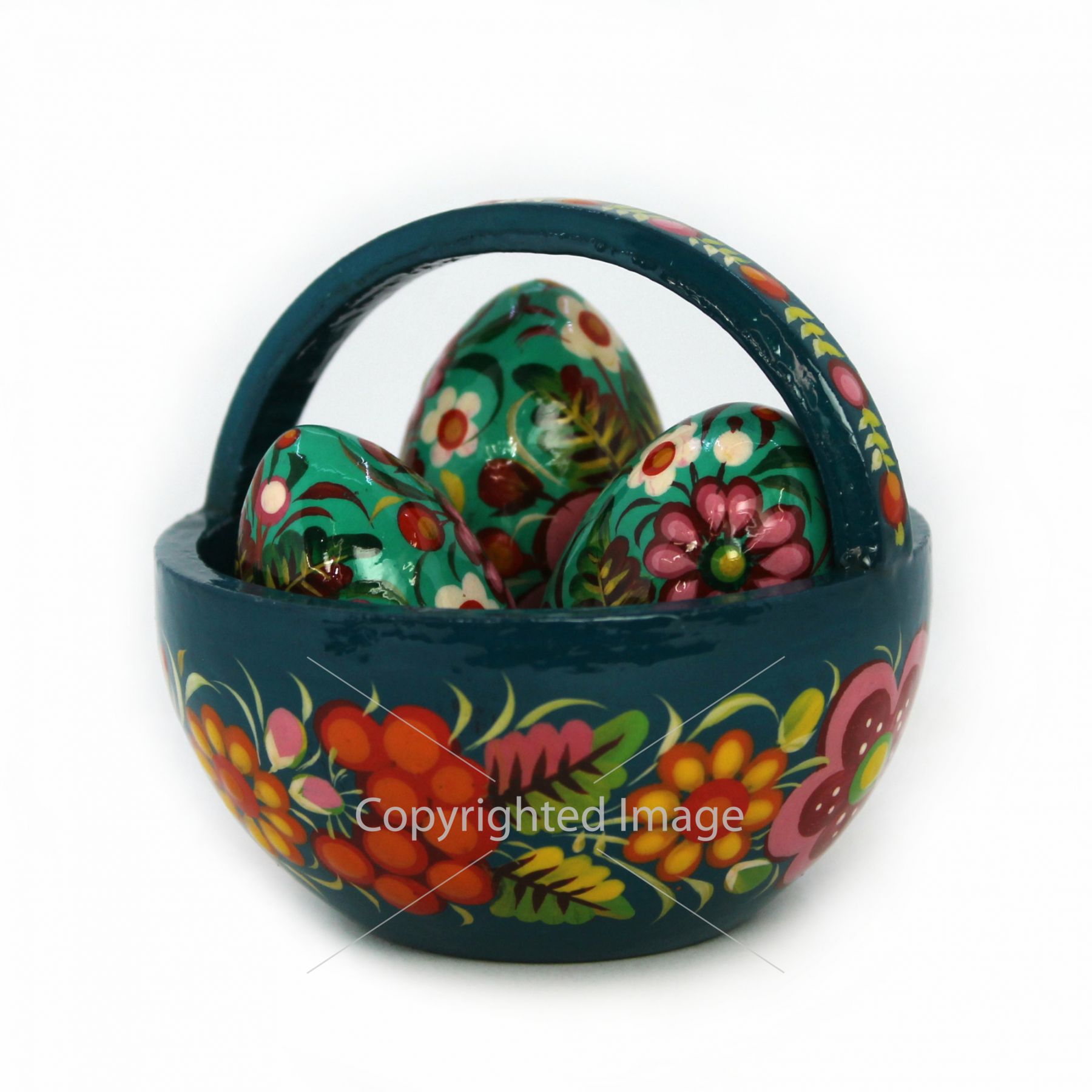 Пасхальный украинский сувенир «Писанки в бирюзовом лукошке»