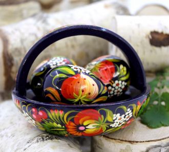Пасхальный украинский сувенир «Писанки в цветочной корзинке»